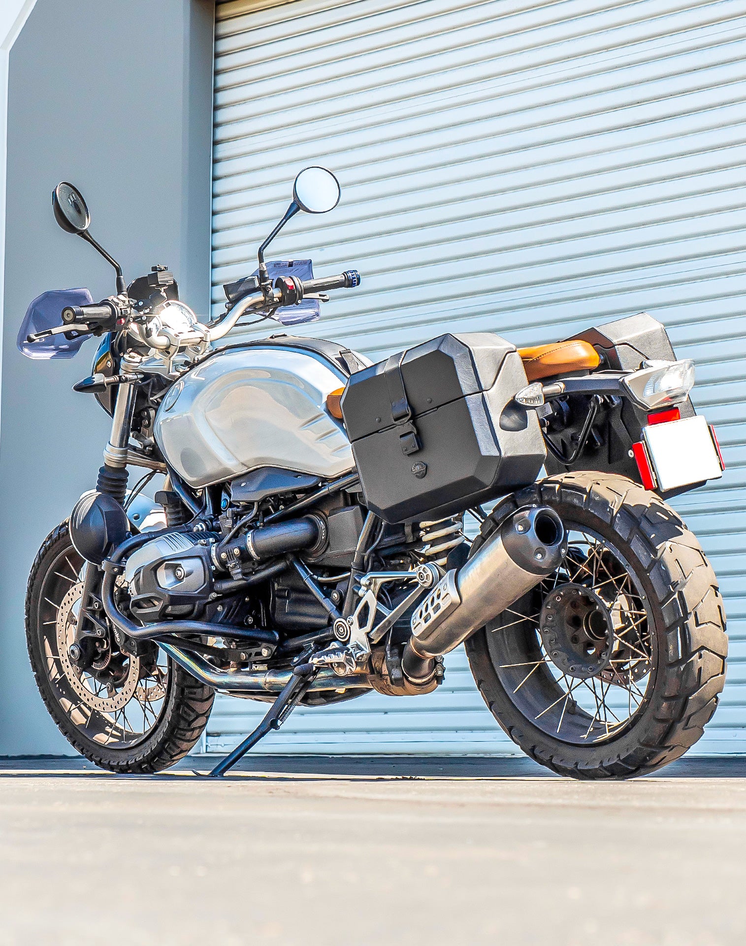 20L - Outlaw Quick-Mount Small BMW R nineT Pure/Racer/GS Leather Wrapped Hard Saddlebags