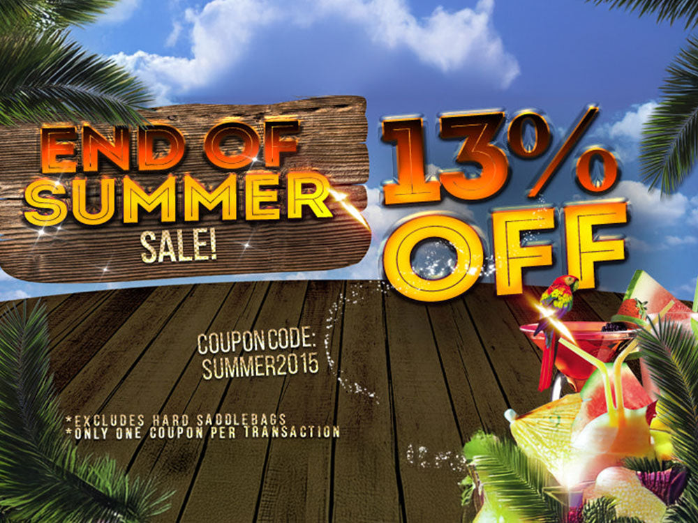 Here’s the last big sale of the summer. Get your gear now before you put your bike away, unless you’re lucky enough to be able to ride into the fall & winter. Ride on! Coupon: SUMMER2015 Discount: 13 % Expiration: 9/20/15 @ 11:59 PM PST Buy Now Buy Now Buy Now Buy Now Popular Collections Related Readings I don’t care who sees me! I’m in Sturgis Baby! Read more What You Should Know About Motorcycle Insurance Read more Pre-Sturgis Sale! Are You Ready? Read more