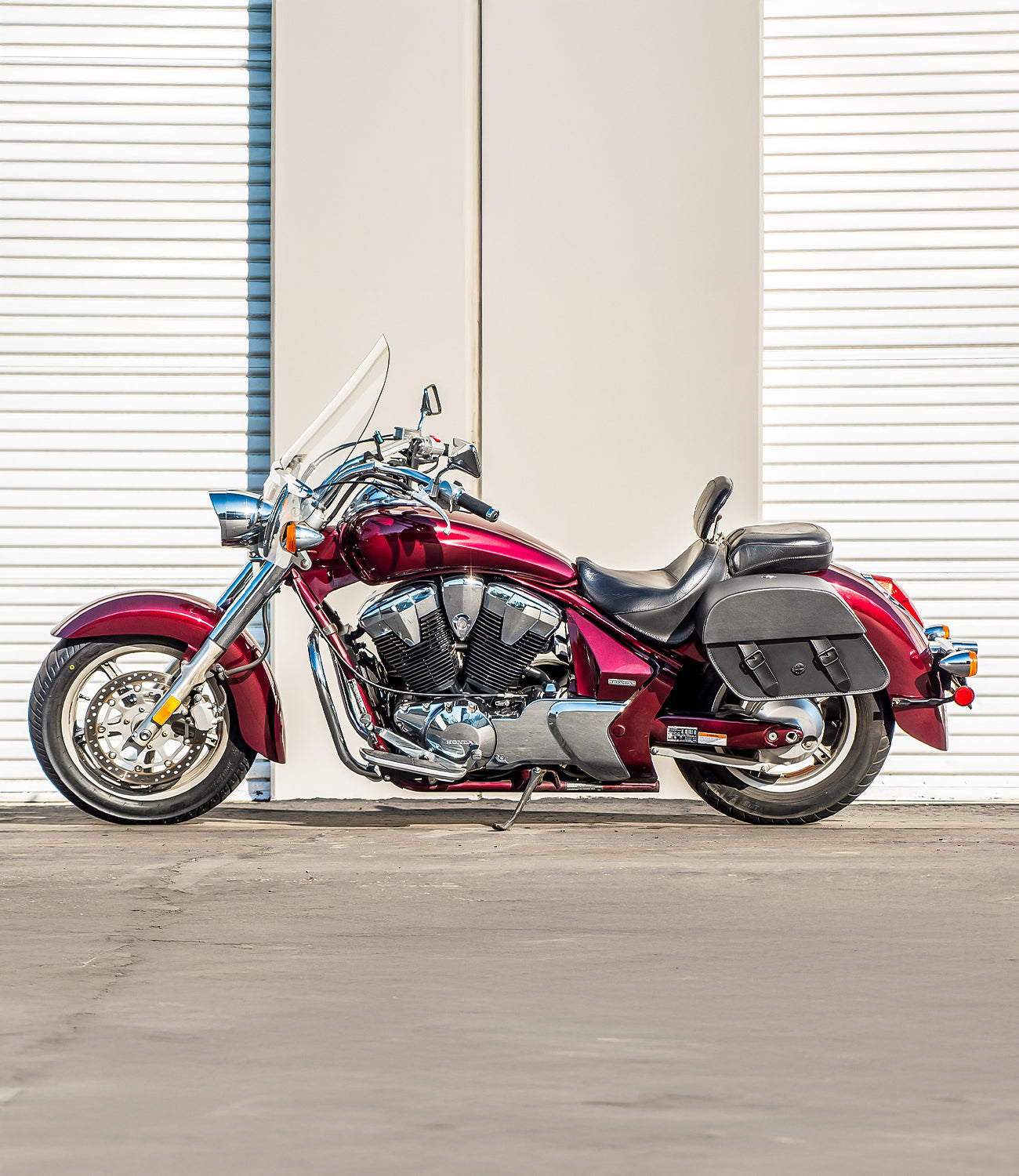 If you want to improve your riding experience, purchasing our bike-specific Honda VT1300CT Interstate saddlebags will help make carrying your belongings easier. The Viking saddlebags for Honda VT1300CT Interstate are made from hard fiberglass or durable leather. The long-lasting fiberglass has a glossy sheen that shines under the sun. The leather bags have a lighter yet durable build.