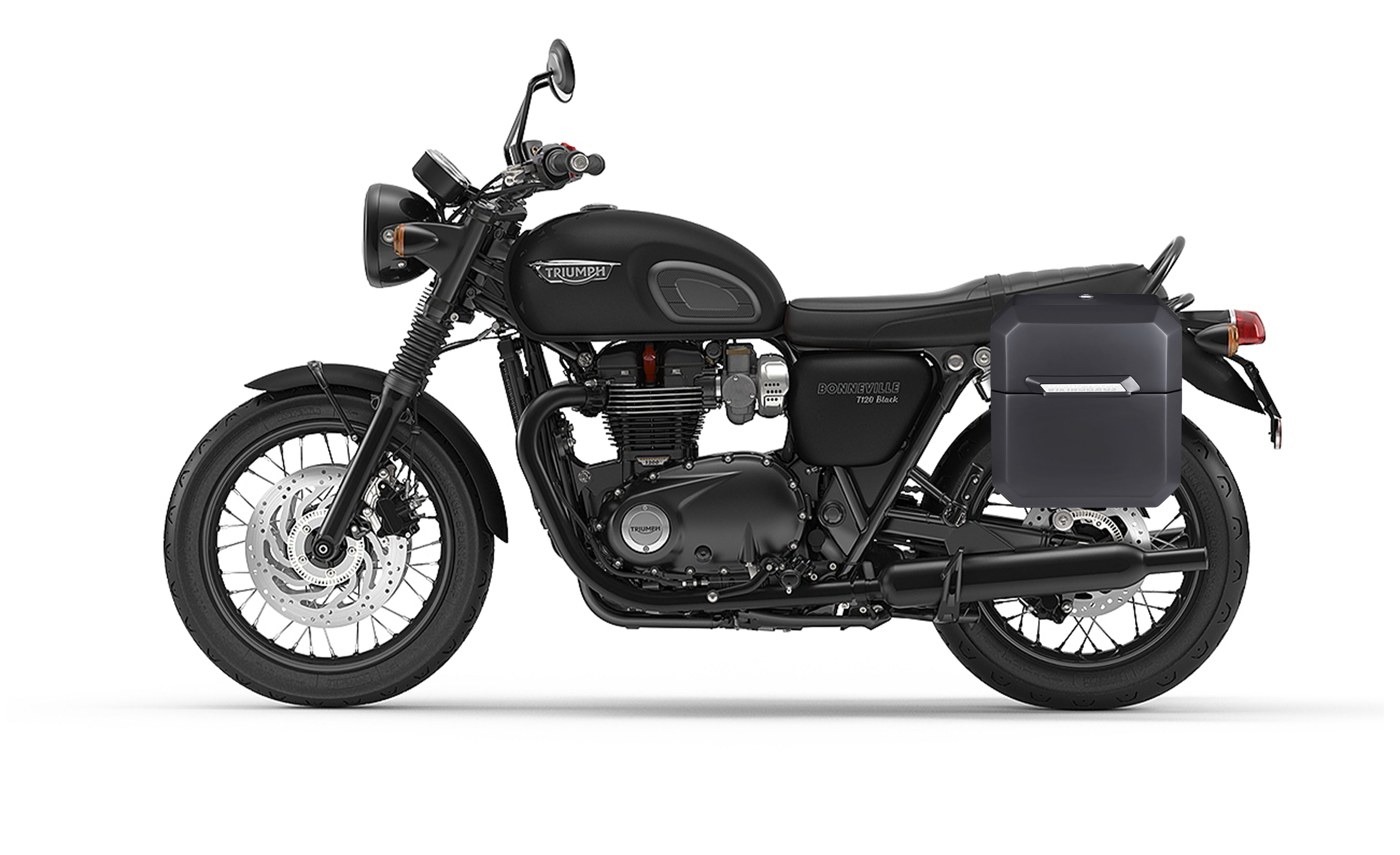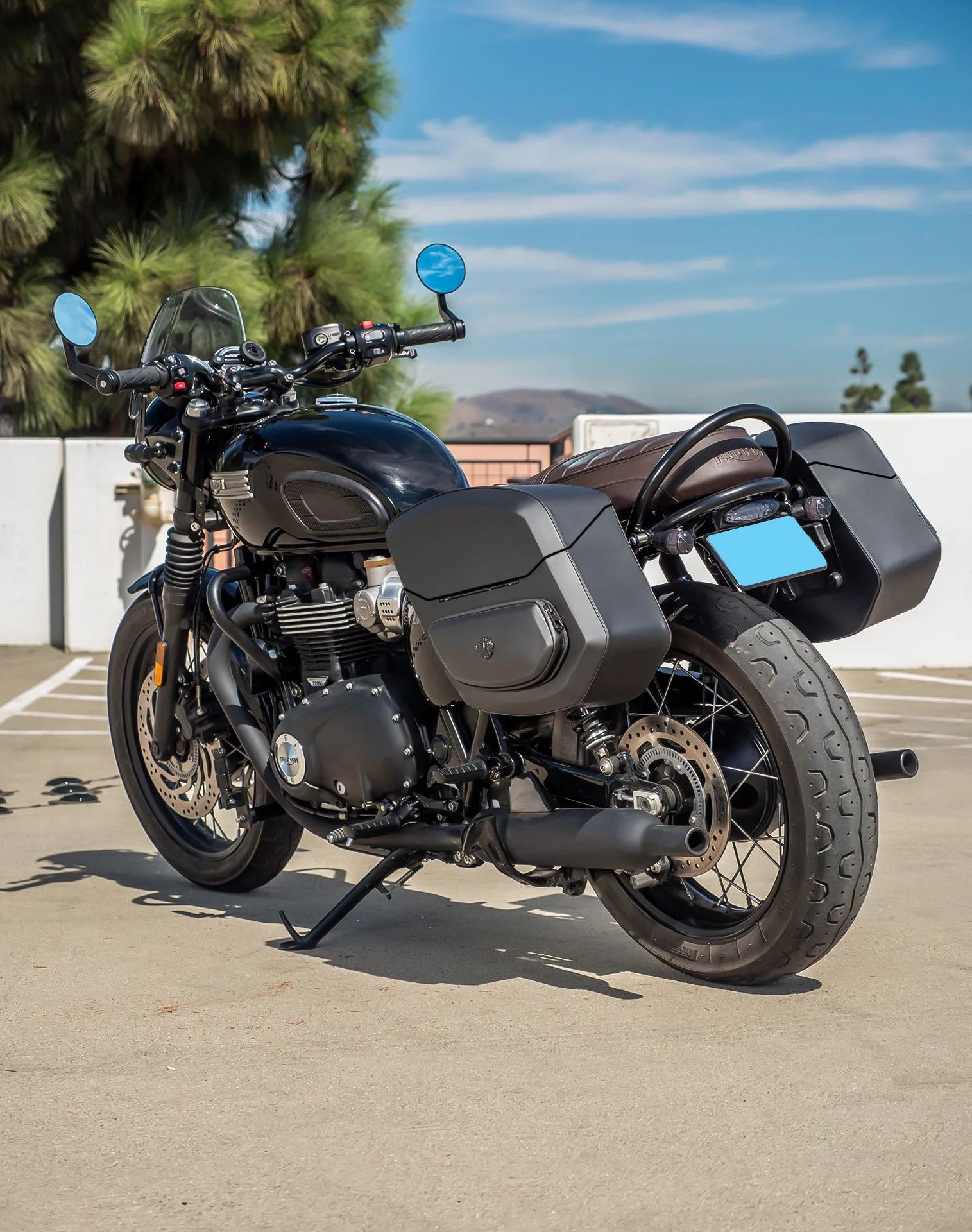 30L - Outlaw Quick-Mount Medium Triumph Bonneville T120 Matte Hard Saddlebags Hero Image30L - Outlaw Quick-Mount Medium Triumph Bonneville T120 Matte Hard Saddlebags Lifestyle @expand