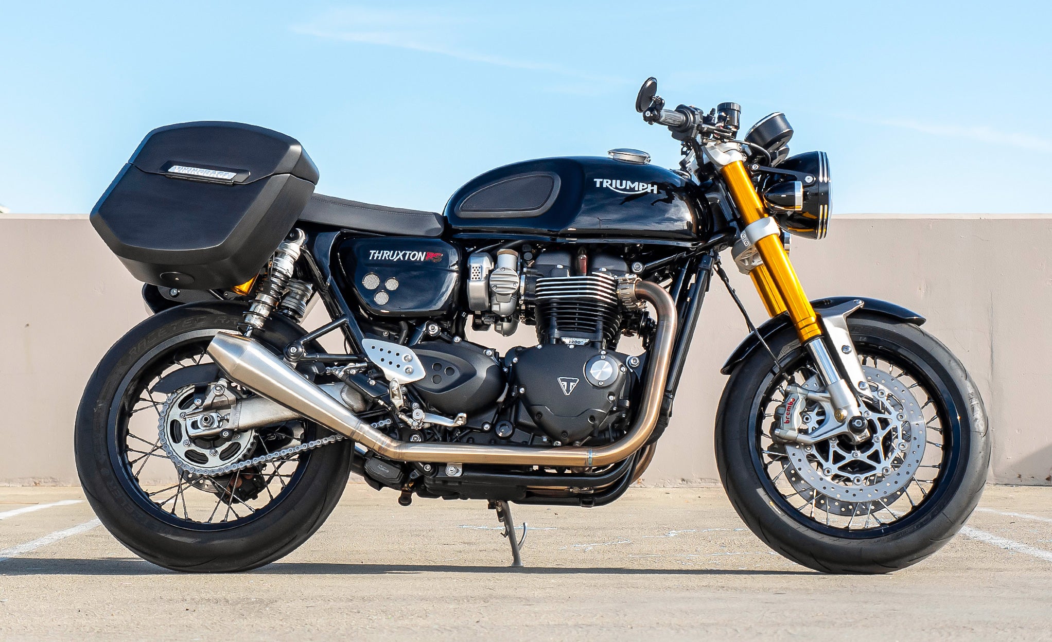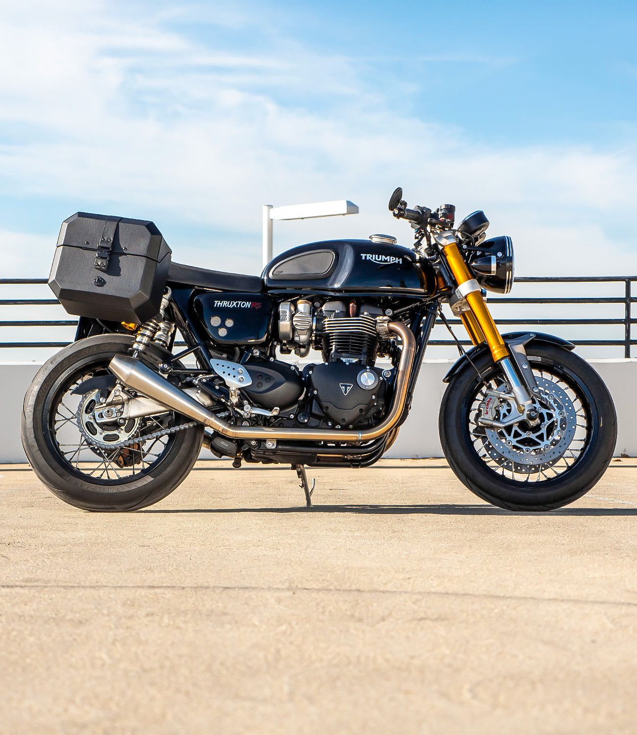 Whether you want to get bike-specific Triumph Thruxton RS (2019+) saddlebags to change your bike’s appearance or be able to carry more stuff, you would be making a good investment getting these long-lasting luggage options. Triumph Thruxton RS (2019+) saddlebags include plenty of leather and hard styles, each of them being constructed from durable material to ensure they can handle heavy rain and flying debris. Many of our designs come with lids secured by buckles and straps or latches and locks. Either option ensures the contents of your bags will not fall out on the road while riding at high speed. The internal shape-retention frames and key-lockable lids help the bags maintain their form and stay closed even when filled.