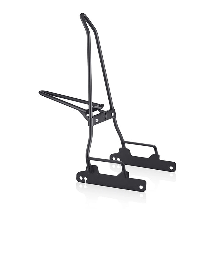 Our patent-pending foldable sissy bars maintain the sleek look of sissy bars with a foldable luggage rack that can be used to carry luggage.