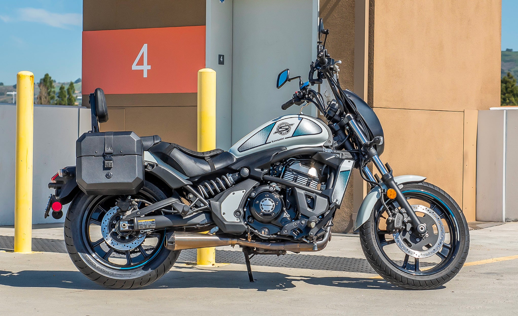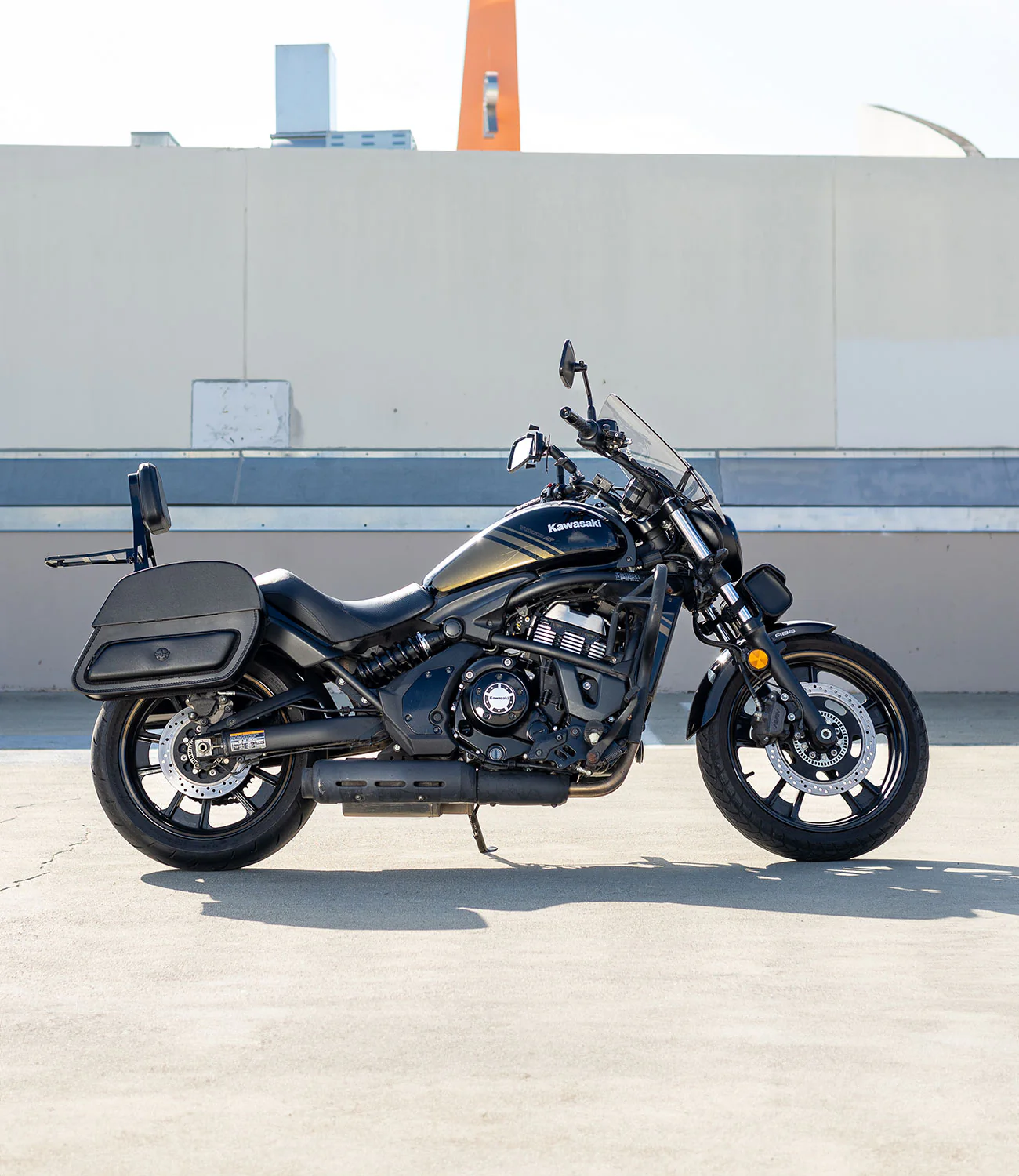Our patent-pending foldable sissy bars maintain the sleek look of sissy bars with a foldable luggage rack that can be used to carry luggage.