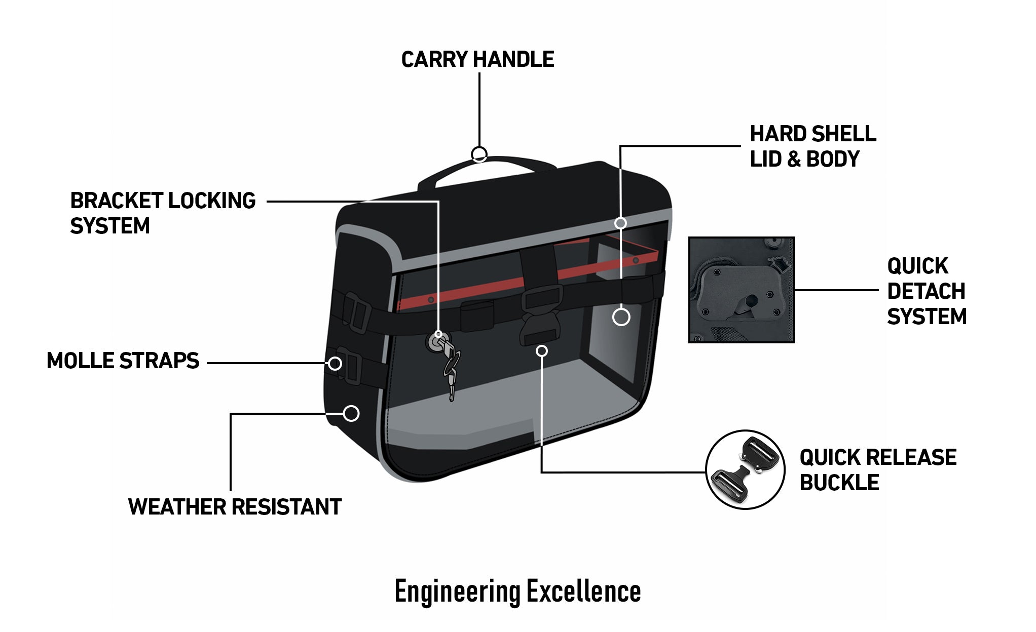 10L - Incognito Quick Mount Small Solo Motorcycle Saddlebag (Right Only) for Harley Sportster 883 Low XL883L