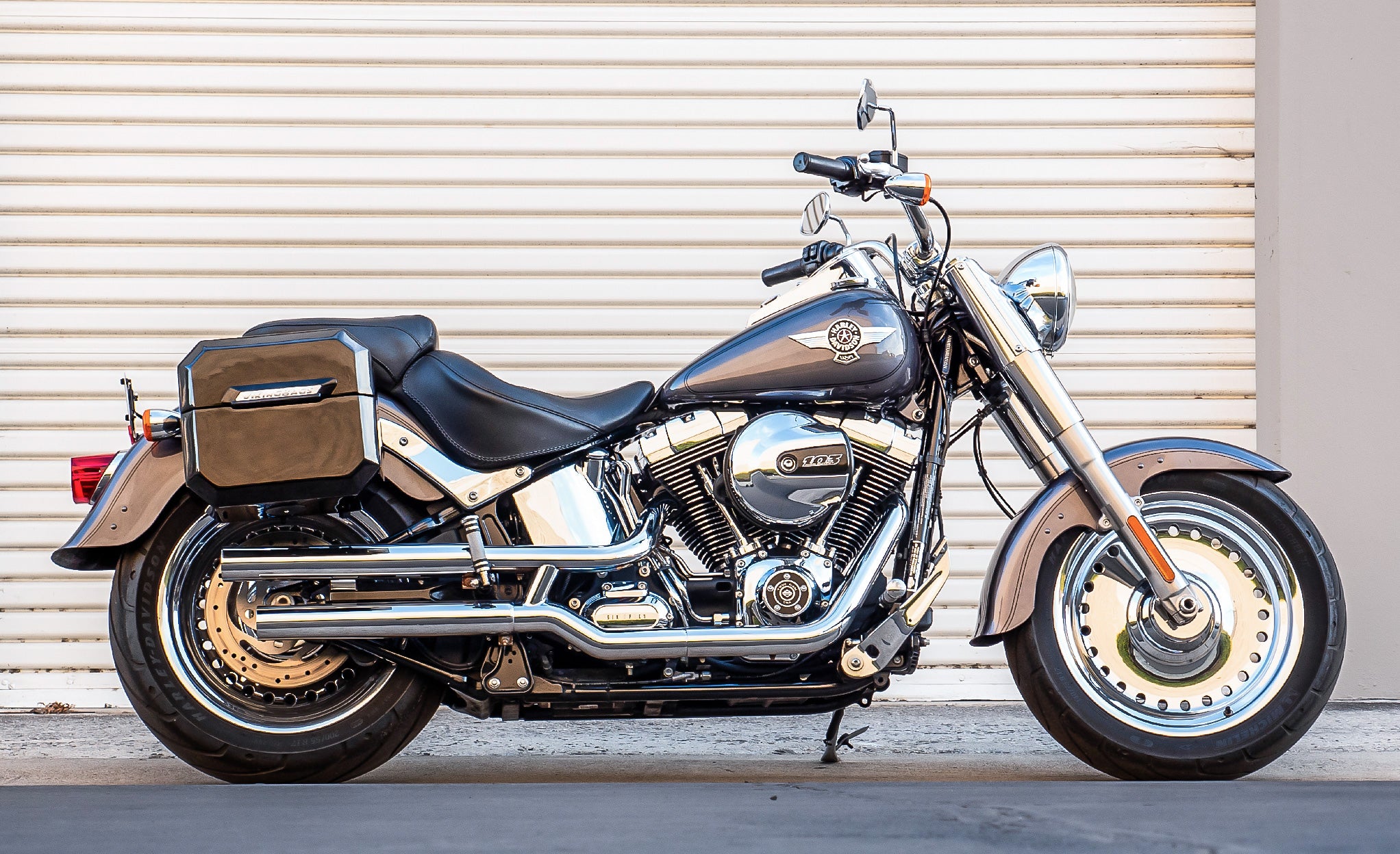 20L - Outlaw Quick-Mount Small Painted Hard Saddlebags for Harley Softail Fat Boy Lo FLSTFB
