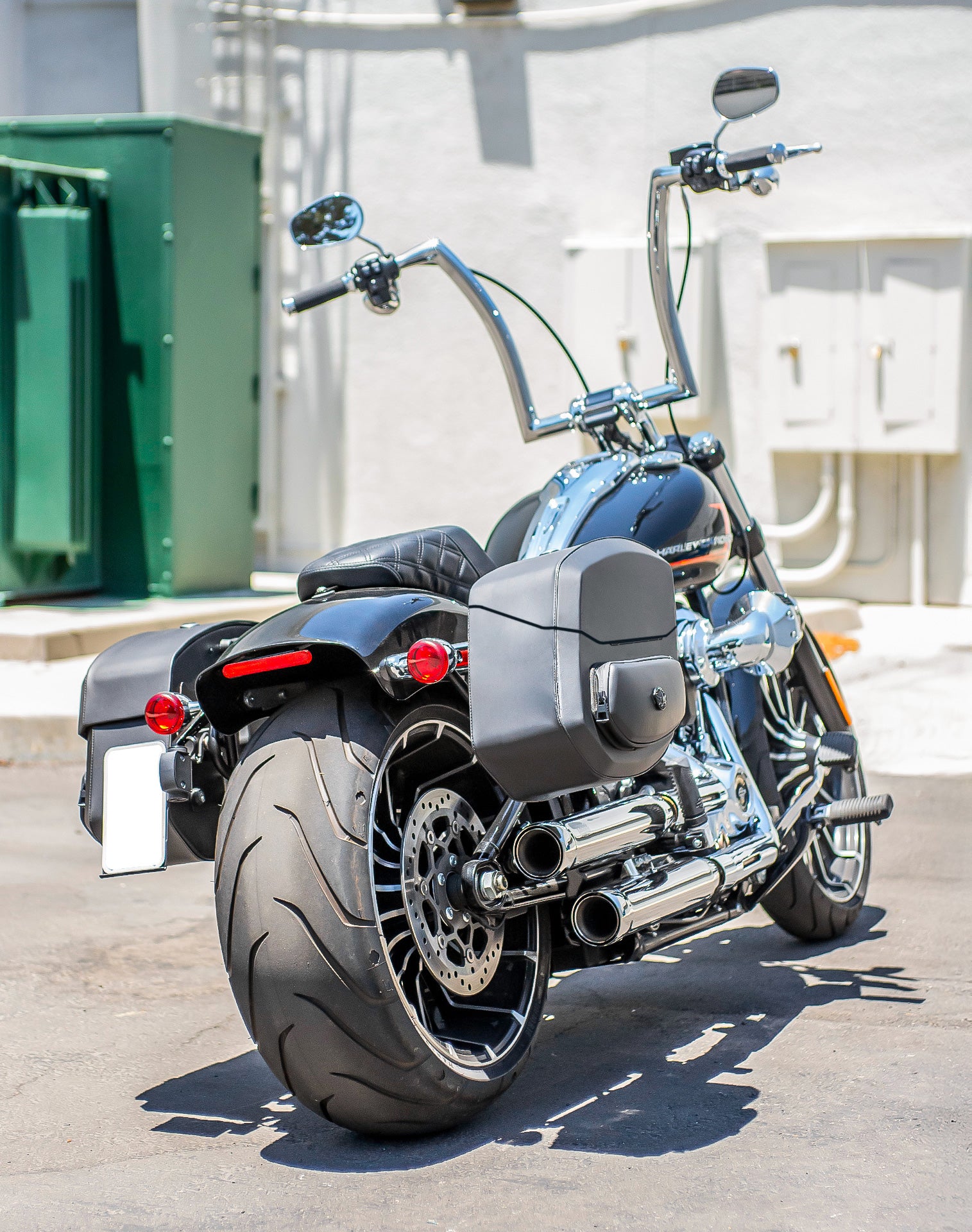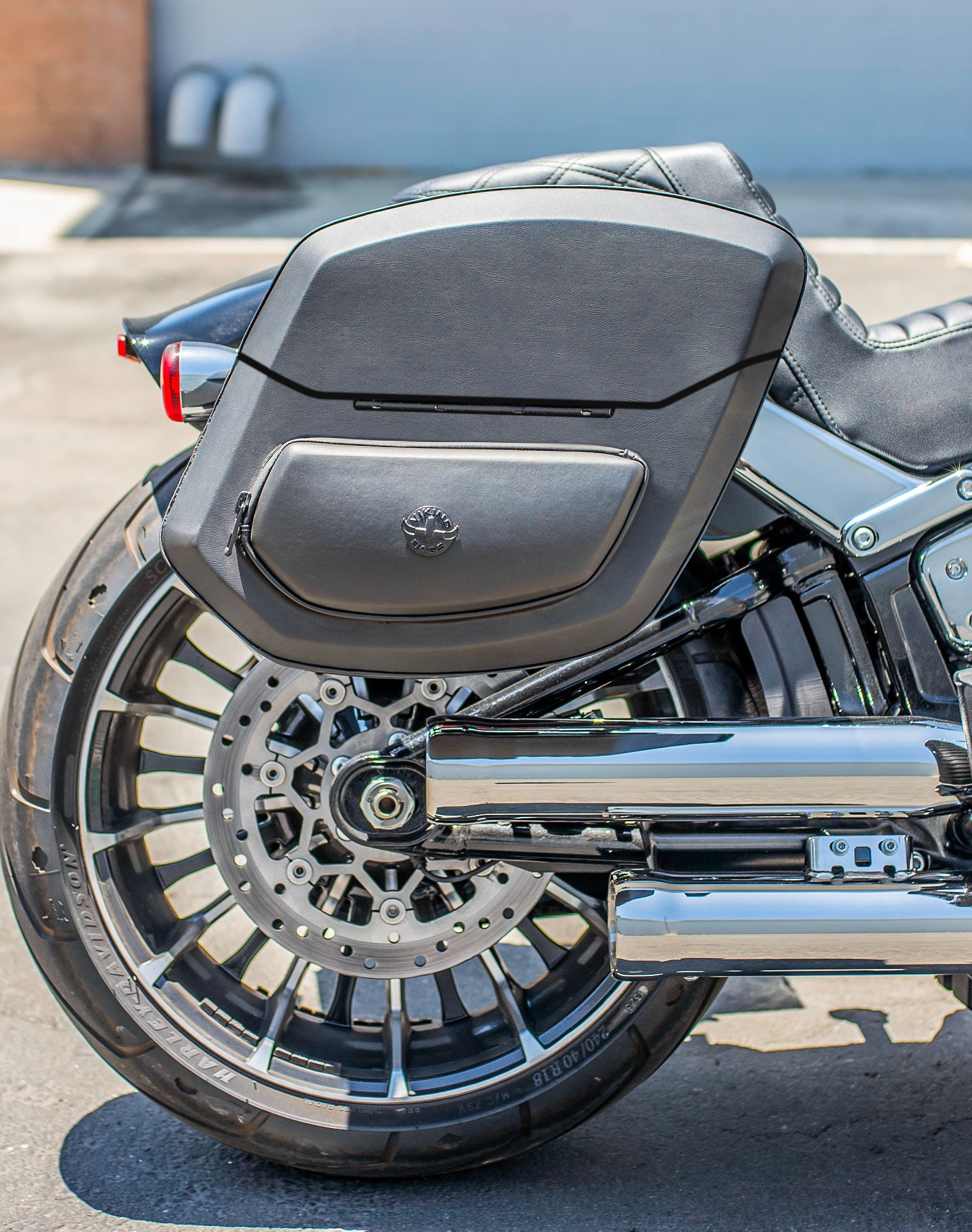 24L - Ironclad Quick-Mount Medium Harley Softail Breakout FXBR/S Leather Wrapped Hard Saddlebags
