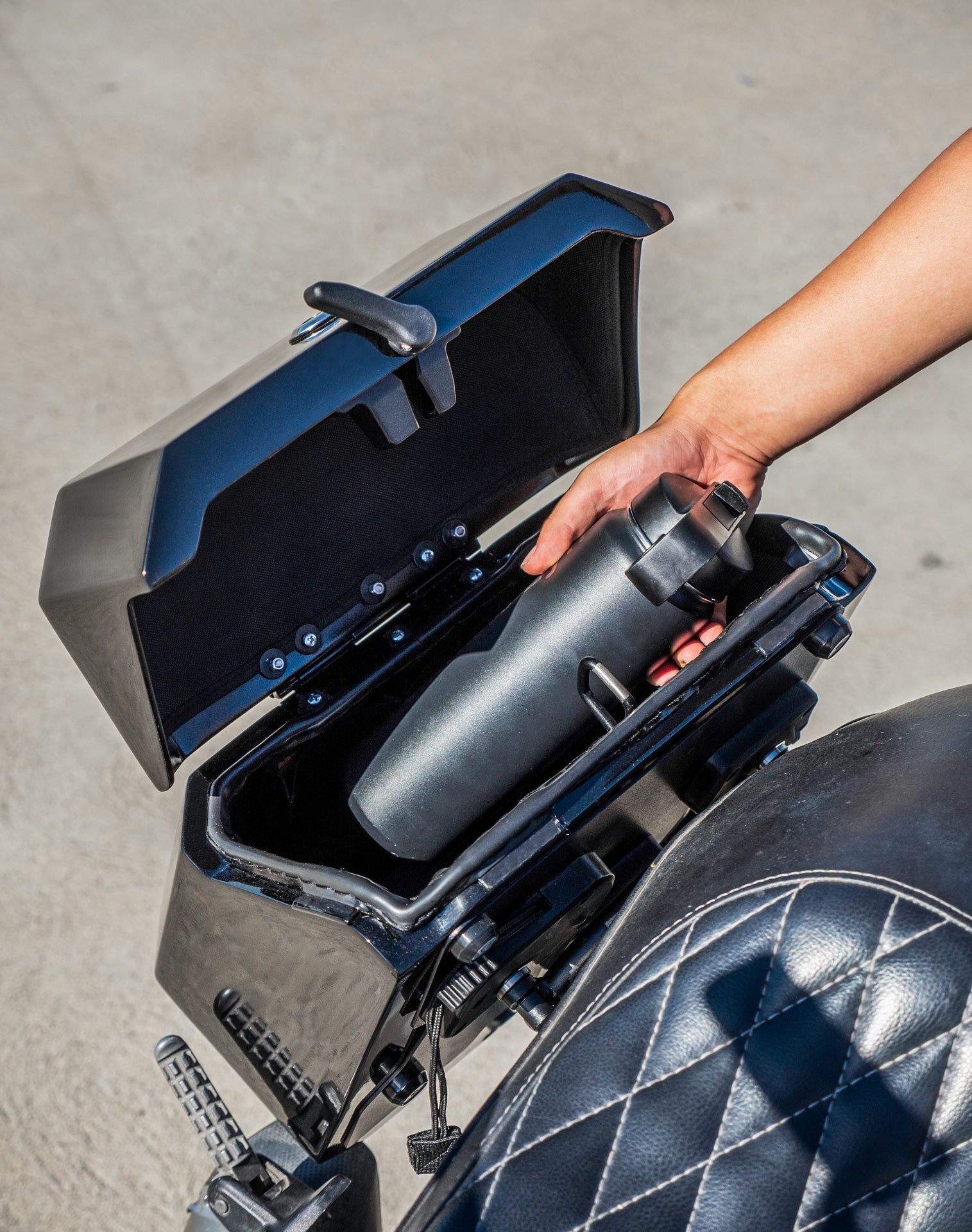 The Viking 30L Outlaw painted Ducati Scrambler (2014-17) medium hard motorcycle saddle bags combine durability with convenience. The quick-mount feature allows for easy installation and detachment, functionality and a classic look. With 1830 cubic inches of storage, a detachable organizer, and an anti-theft lock, these painted bags are perfect for any adventure.
