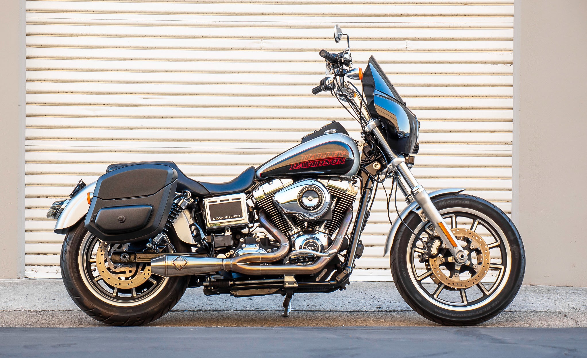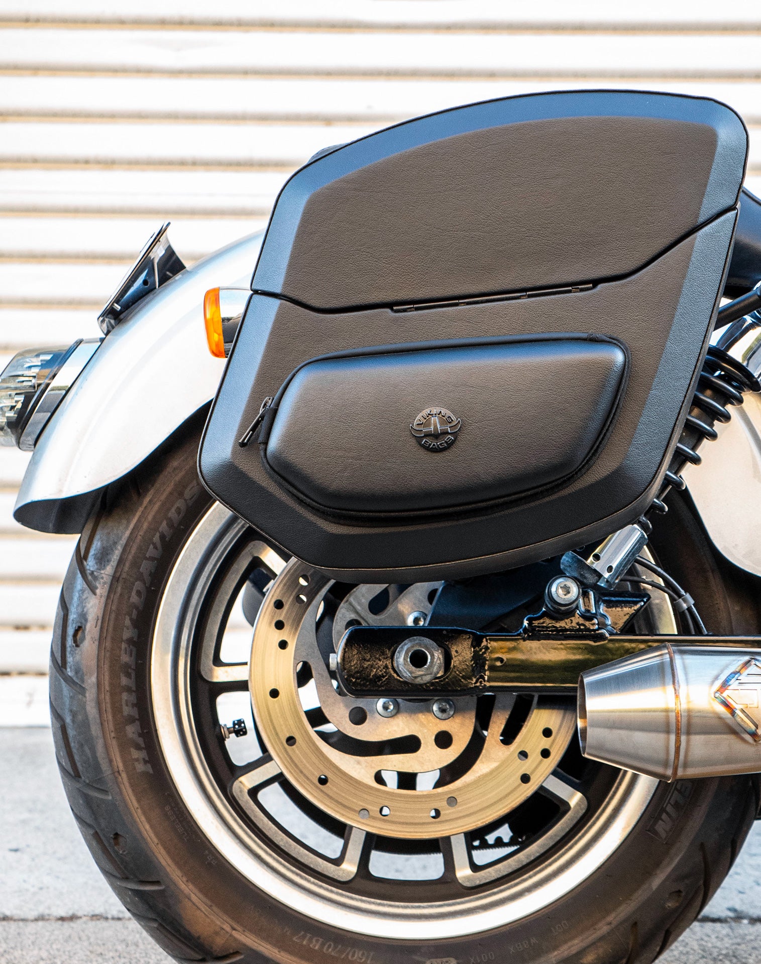 24L - Ironclad Quick-Mount Medium Harley Dyna Low Rider FXDL Leather Wrapped Hard Saddlebags