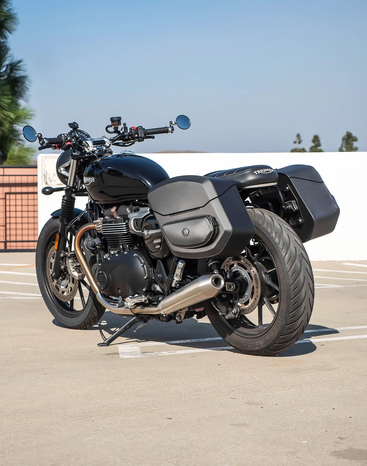 24L - Ironclad Quick-Mount Medium Triumph Speed Twin 900 Leather Wrapped Hard Saddlebags