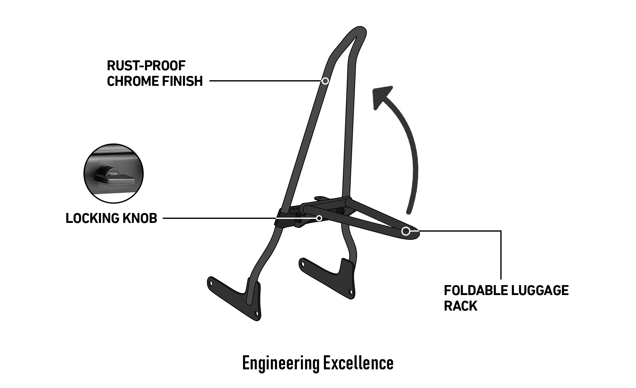 Iron Born Blade 25" Sissy Bar w/ Foldable Luggage Rack for Harley Softail Standard FXST Chrome