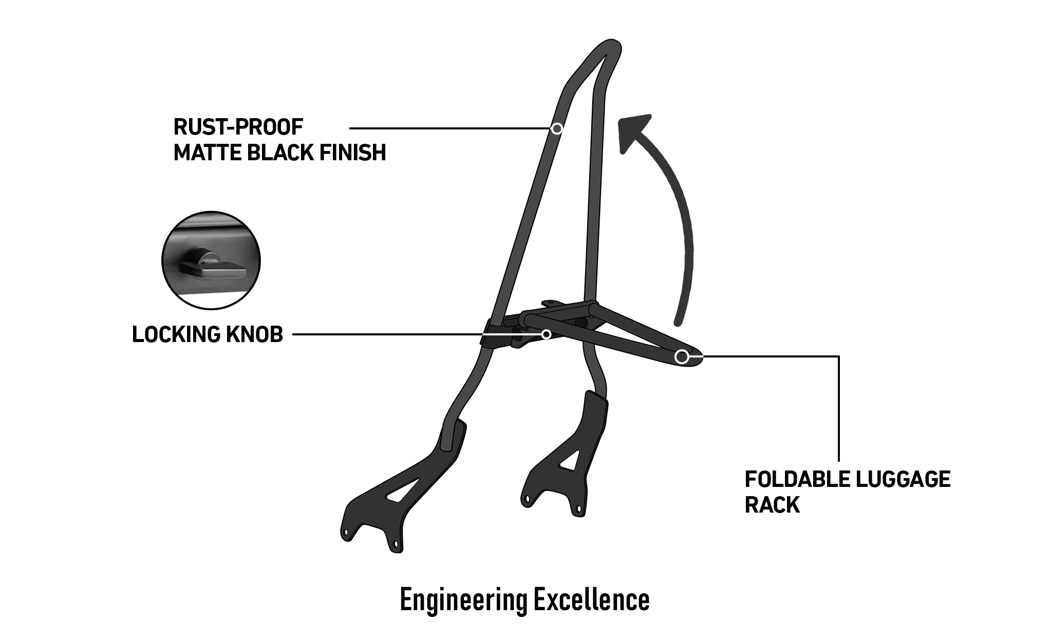 Iron Born Blade 25" Yamaha Bolt Sissy Bar with Foldable Luggage Rack Matte Black