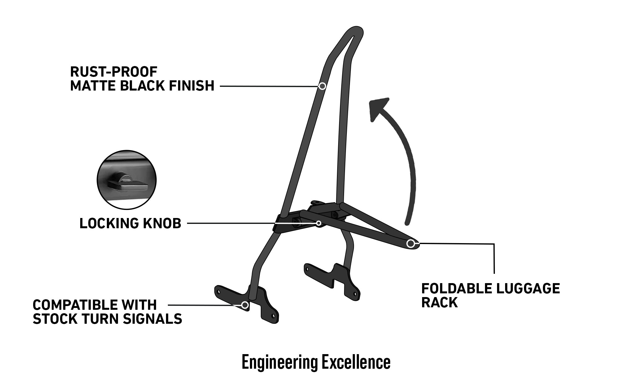 Iron Born Blade 25" Sissy Bar with Foldable Luggage Rack for Harley Sportster Seventy Two Matte Black