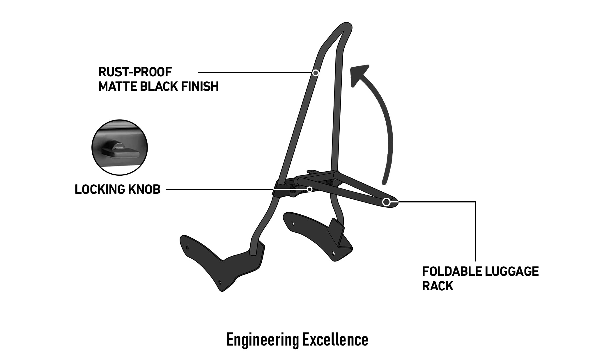 Iron Born Blade 25" Sissy Bar with Foldable Luggage Rack for Kawasaki Vulcan 900 Classic, VN900 Matte Black