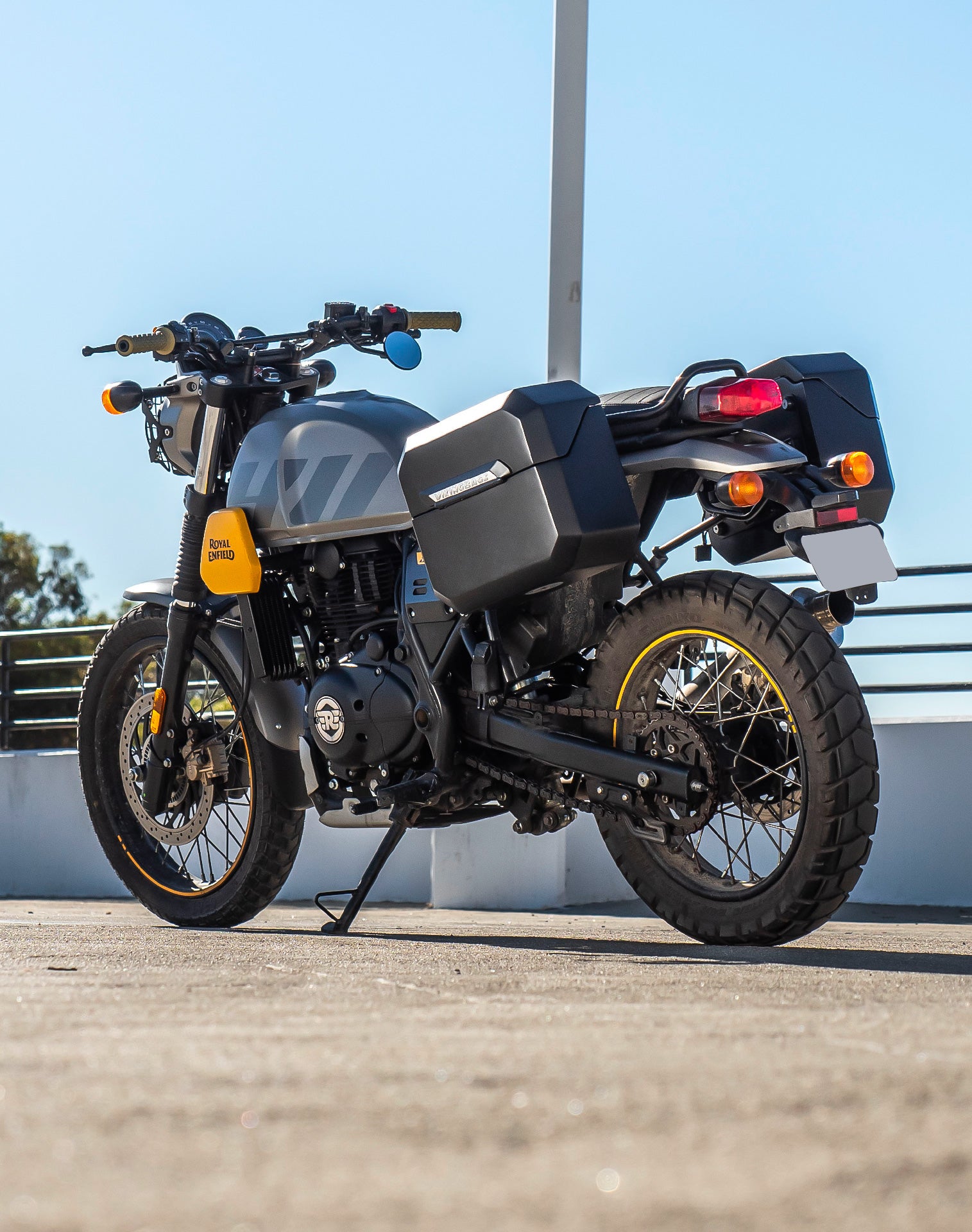 20L - Outlaw Quick-Mount Small Royal Enfield Scram 411 Matte Hard Saddlebags