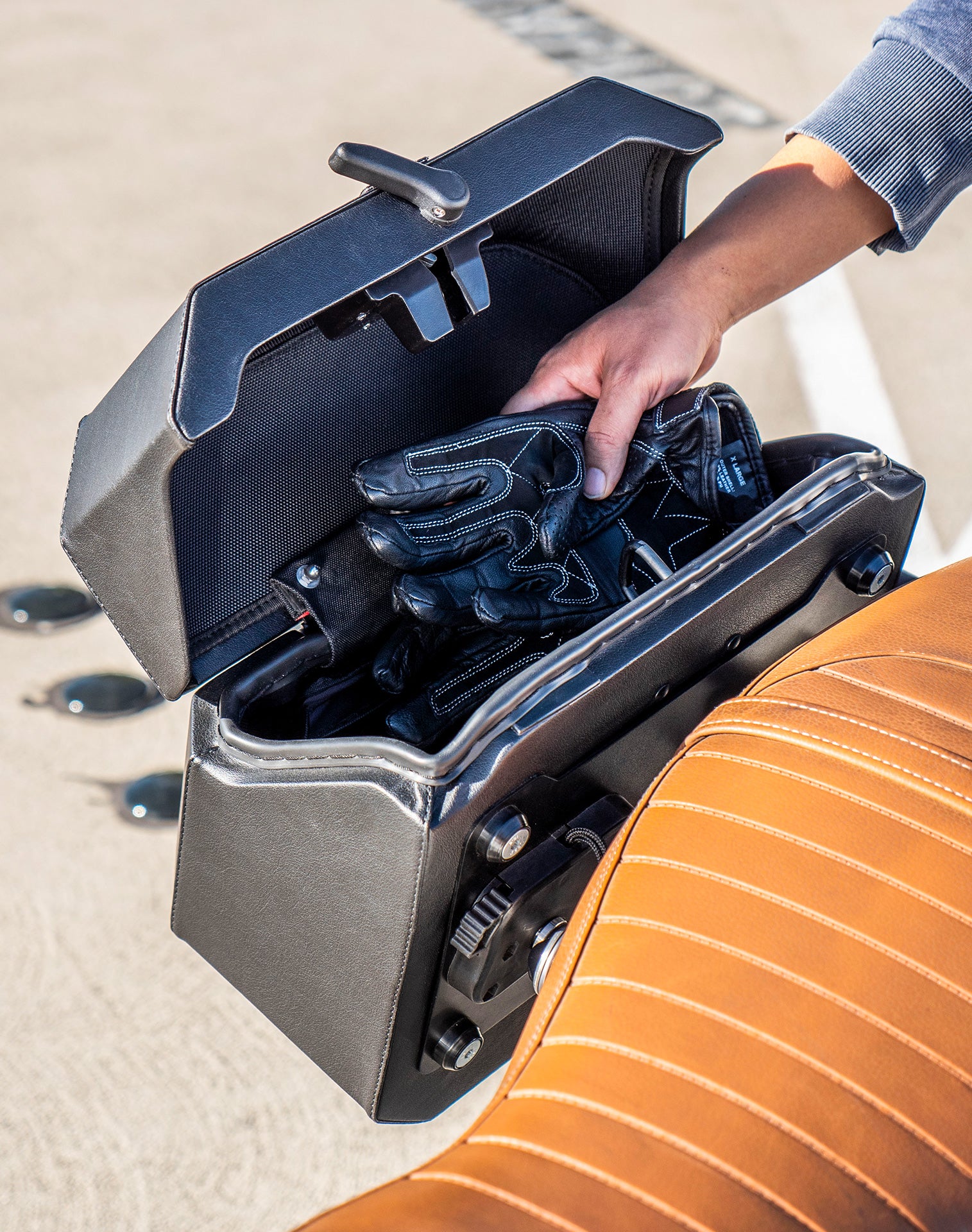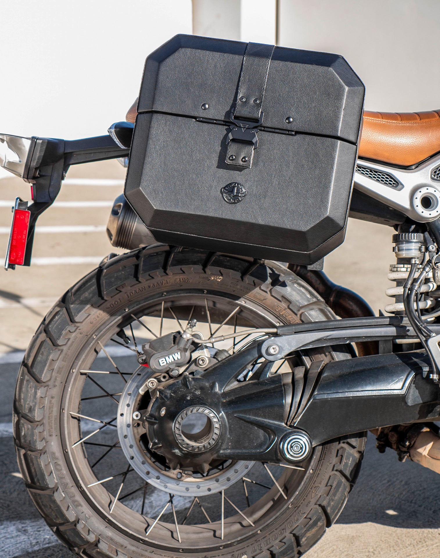 20L - Outlaw Quick-Mount Small BMW R nineT Pure/Racer/GS Leather Wrapped Hard Saddlebags