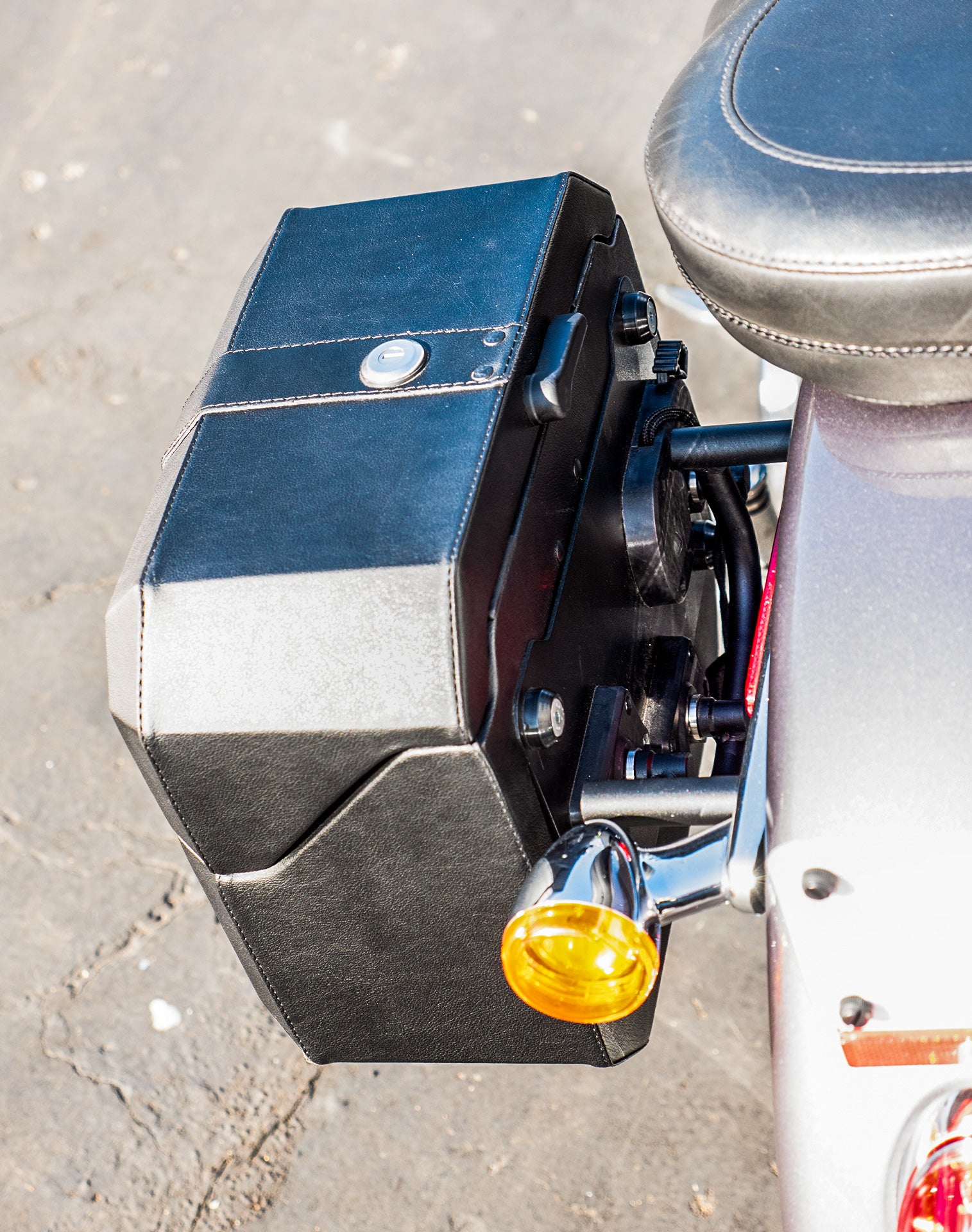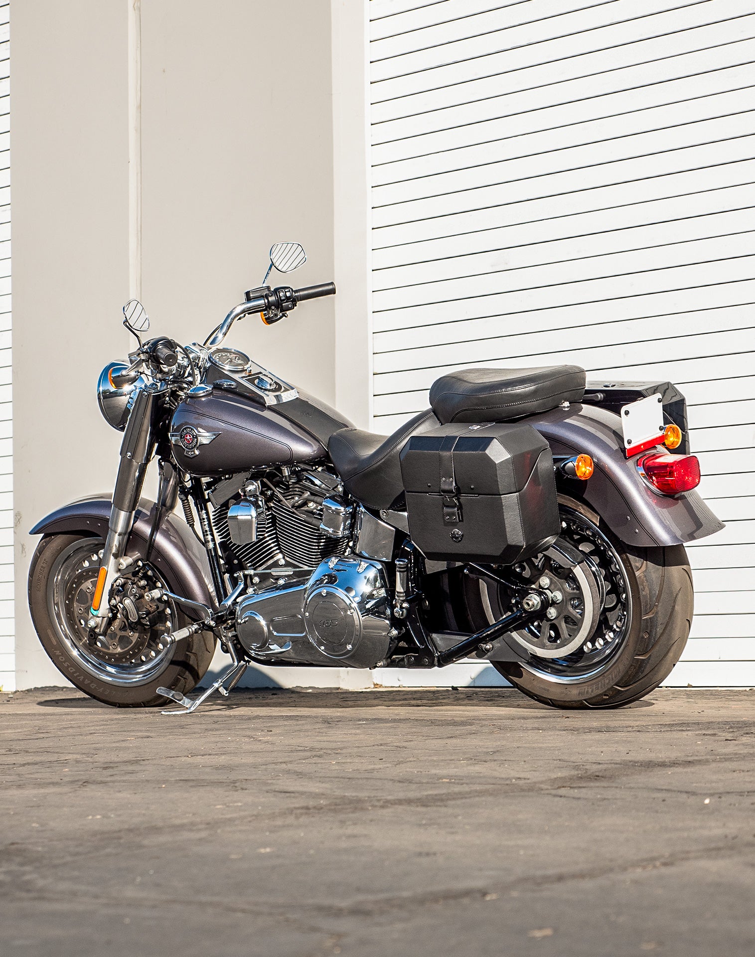 20L - Outlaw Quick-Mount Small Leather Wrapped Hard Saddlebags for Harley Softail Fat Boy FLSTF/I