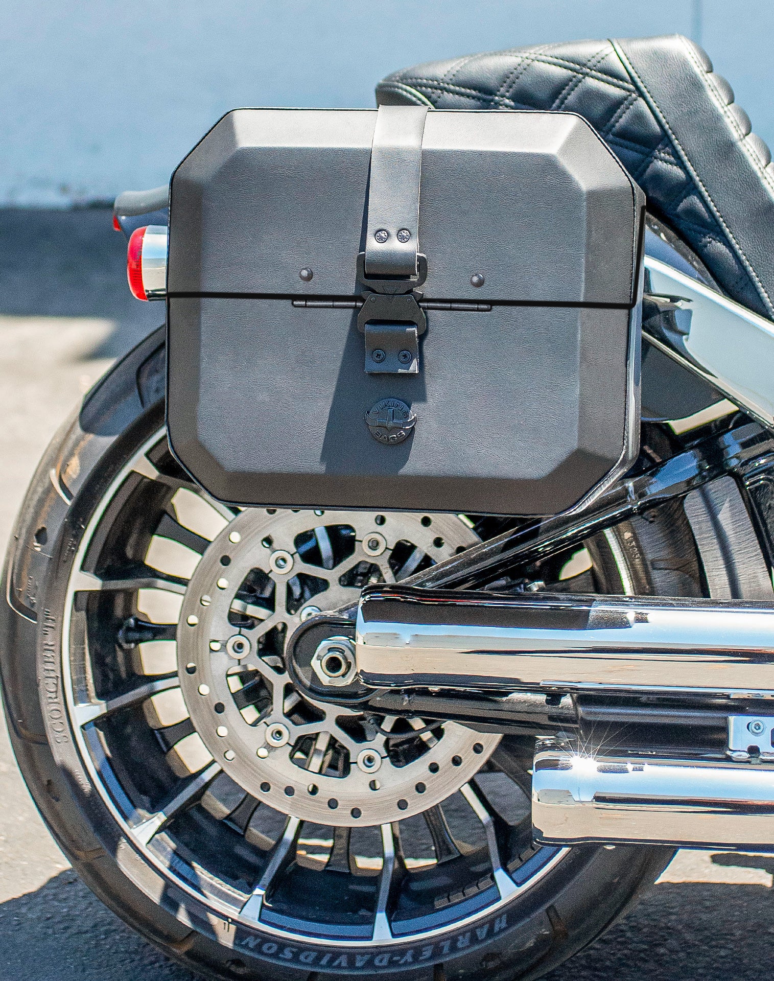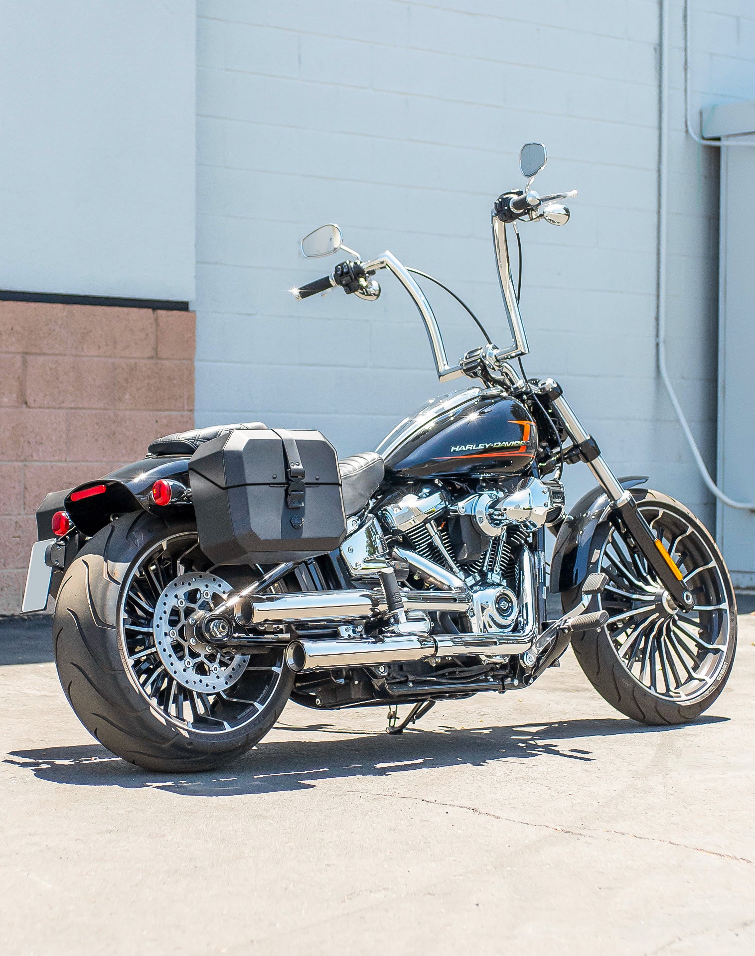 20L - Outlaw Quick-Mount Small Harley Softail Breakout FXBR/S Leather Wrapped Hard Saddlebags