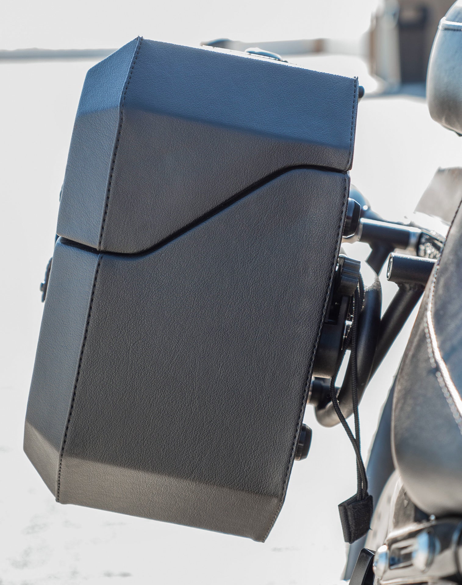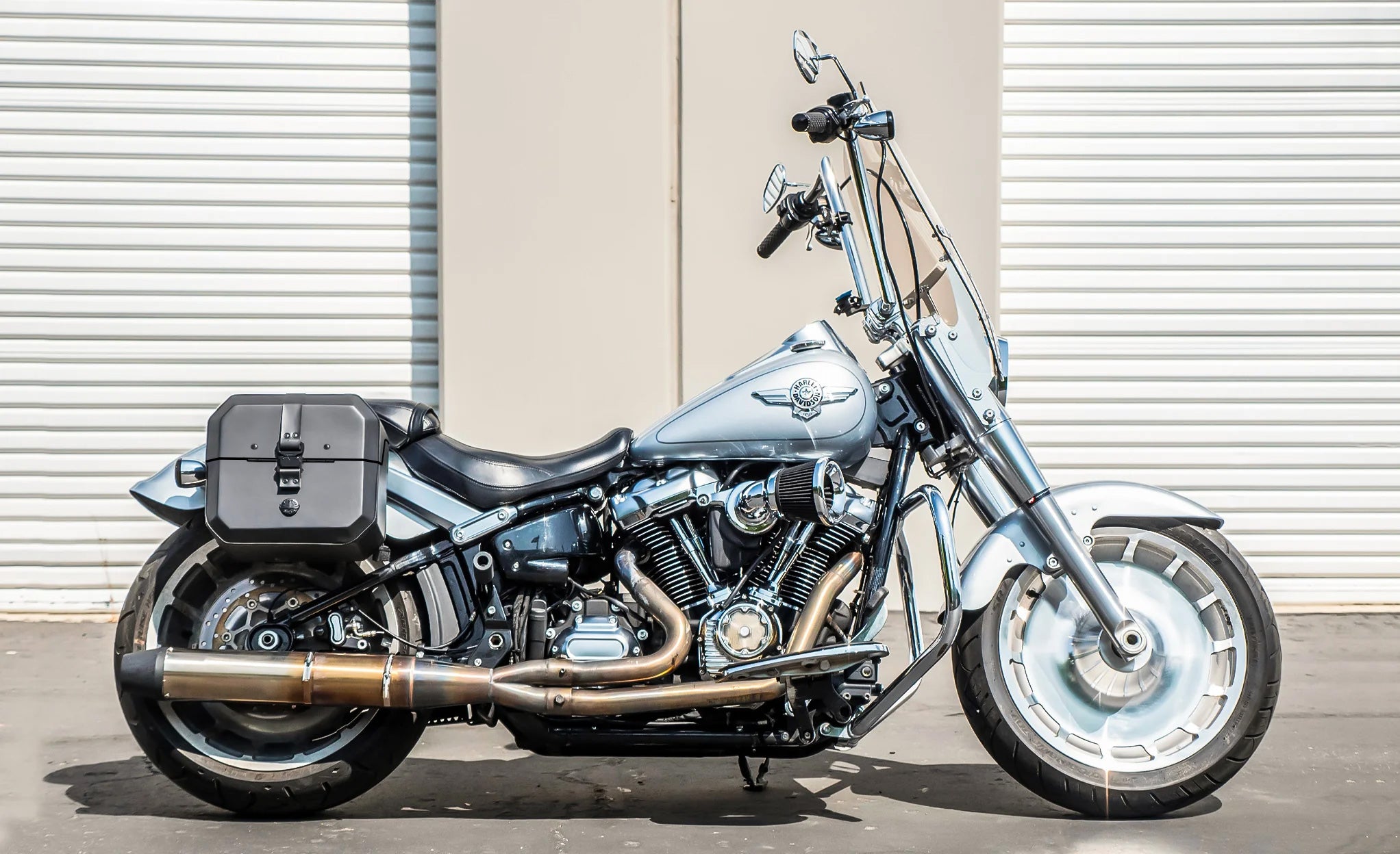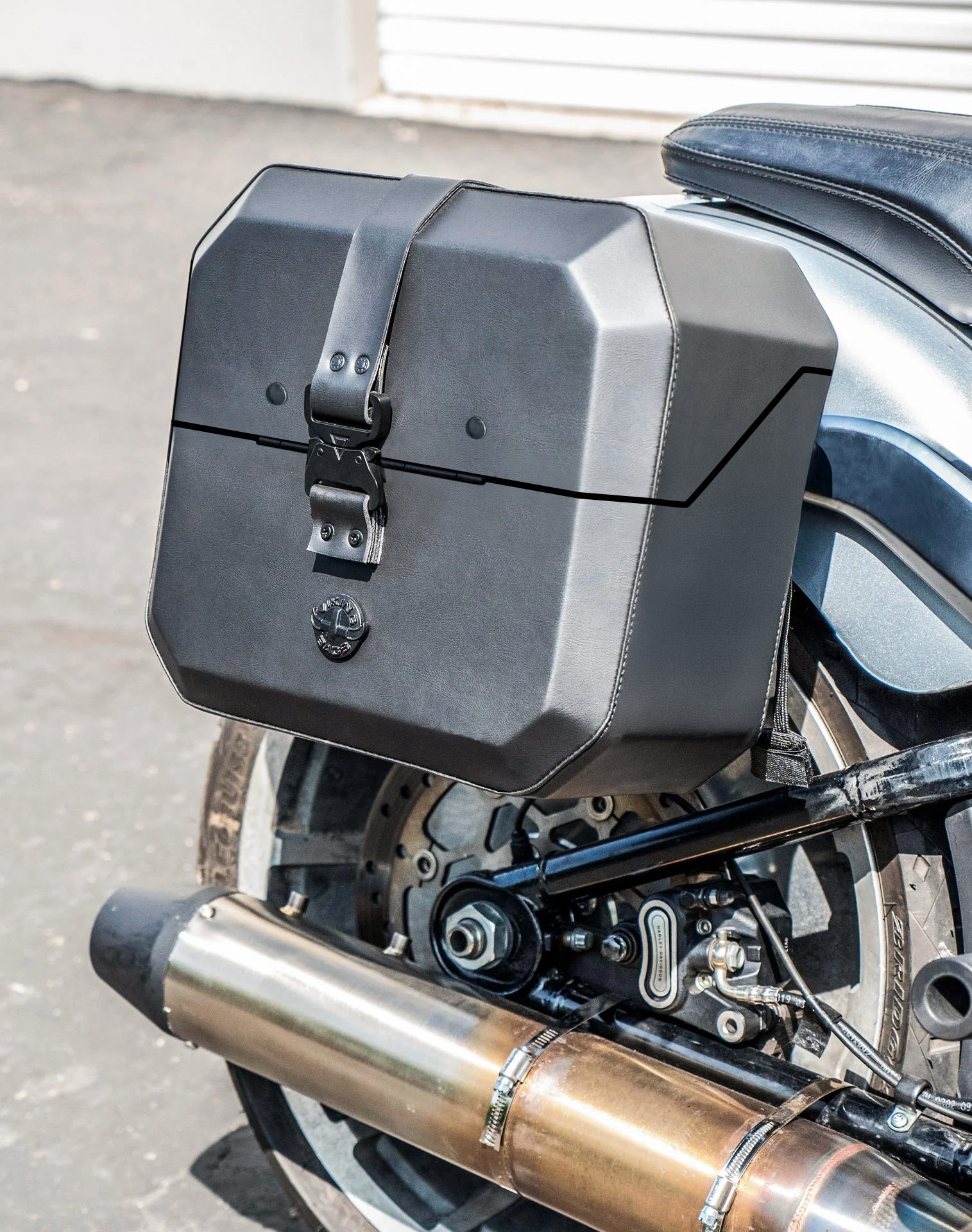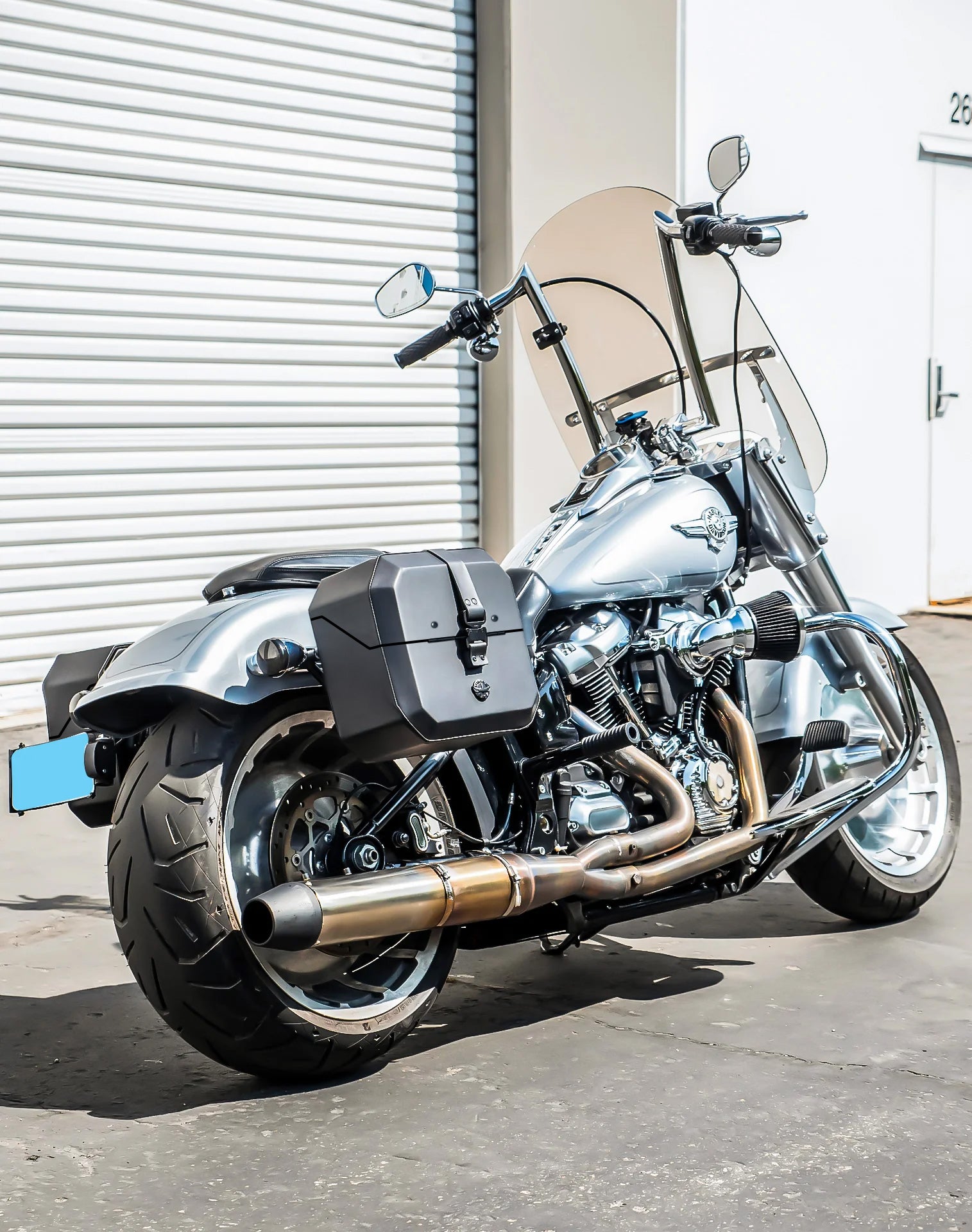 20L - Outlaw Quick-Mount Small Harley Softail Fat Boy FLFB/S Leather Wrapped Hard Saddlebags