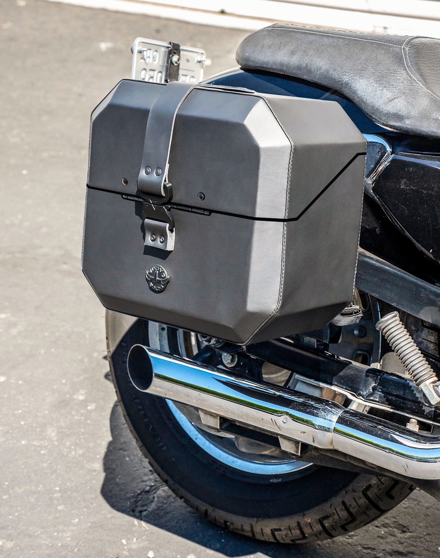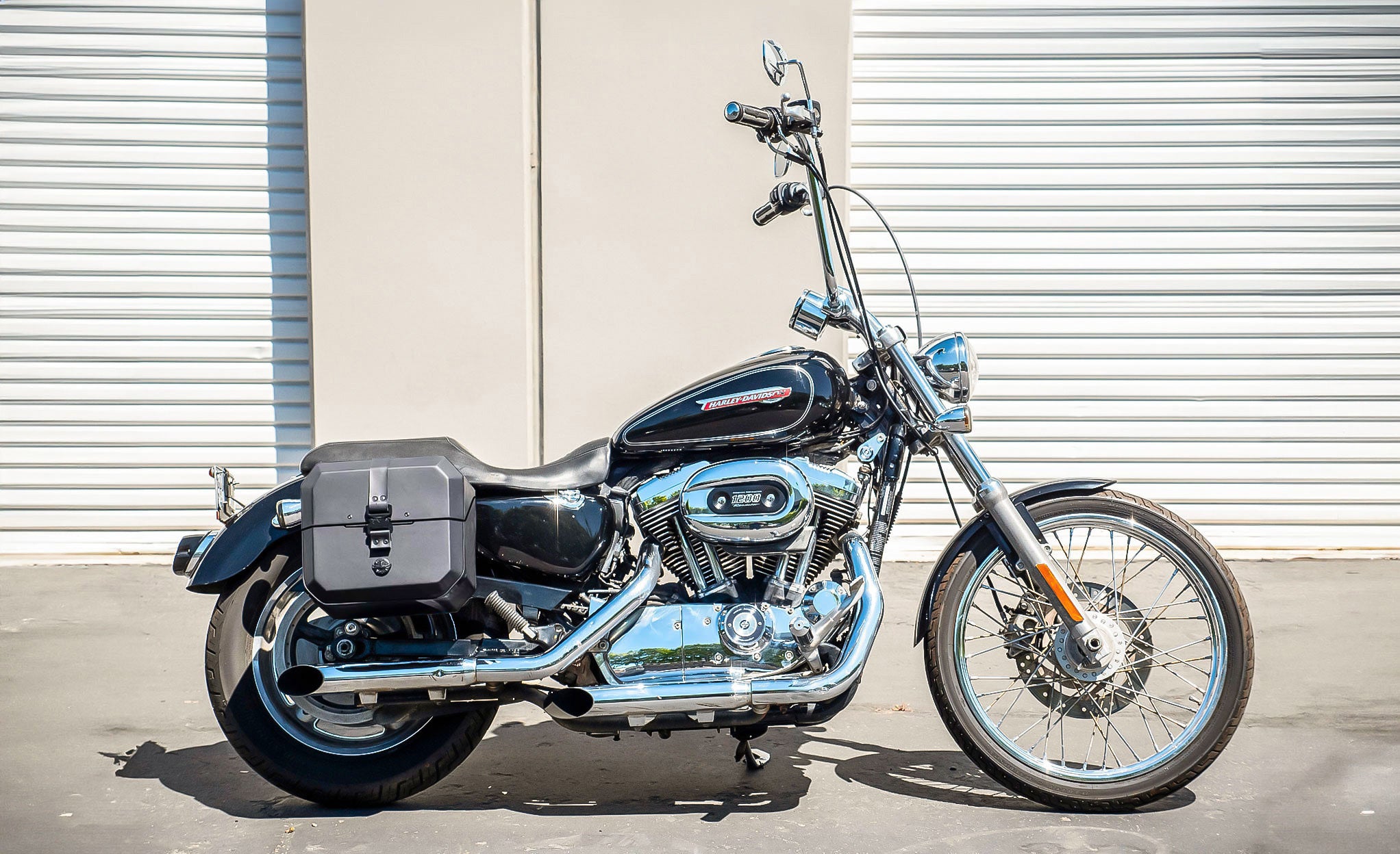 20L - Outlaw Quick-Mount Small Harley Sportster 1200 Custom XL1200C Leather Wrapped Hard Saddlebags