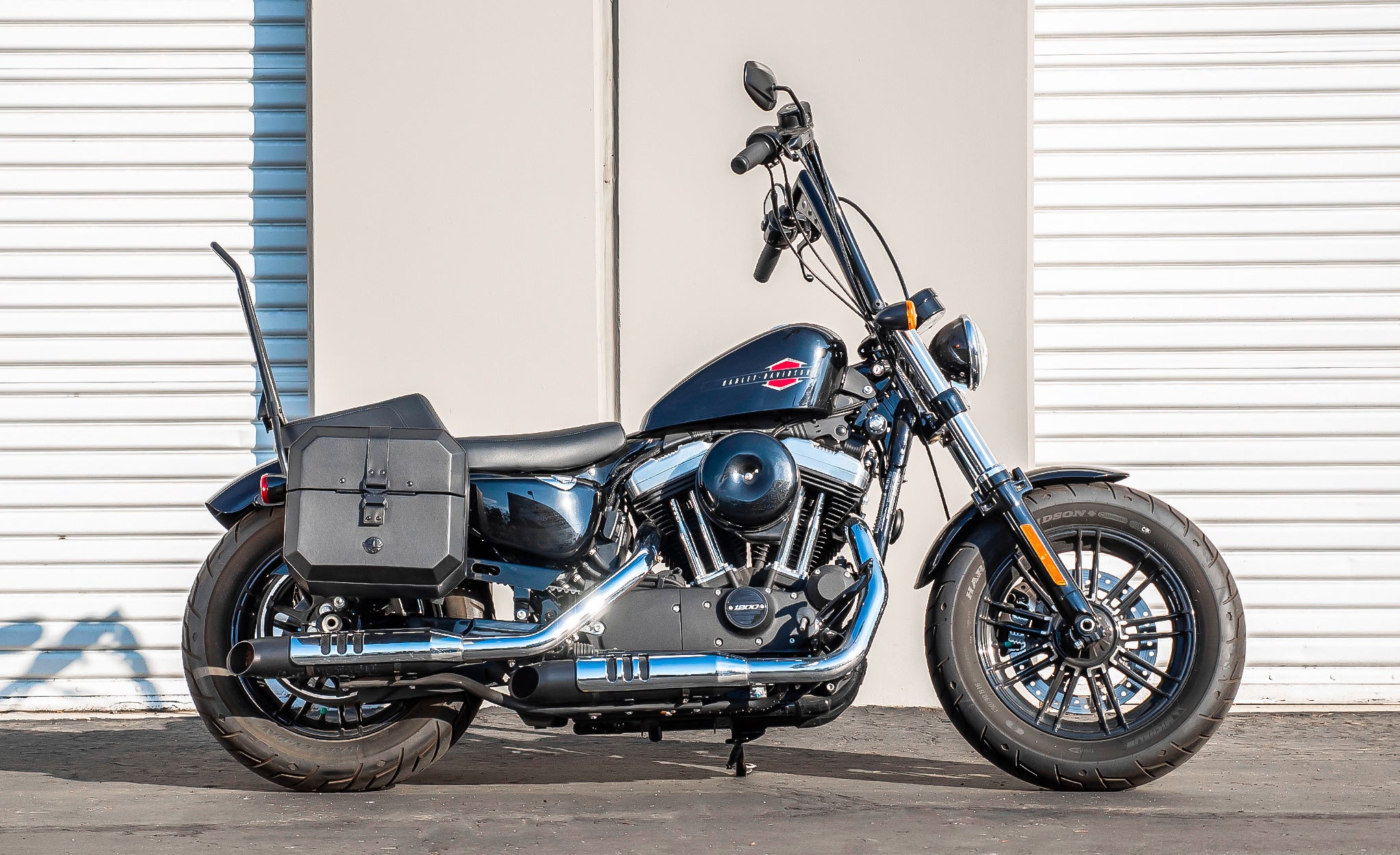 20L - Outlaw Quick-Mount Small Harley Sportster Forty Eight 48 XL1200X Leather Wrapped Hard Saddlebags