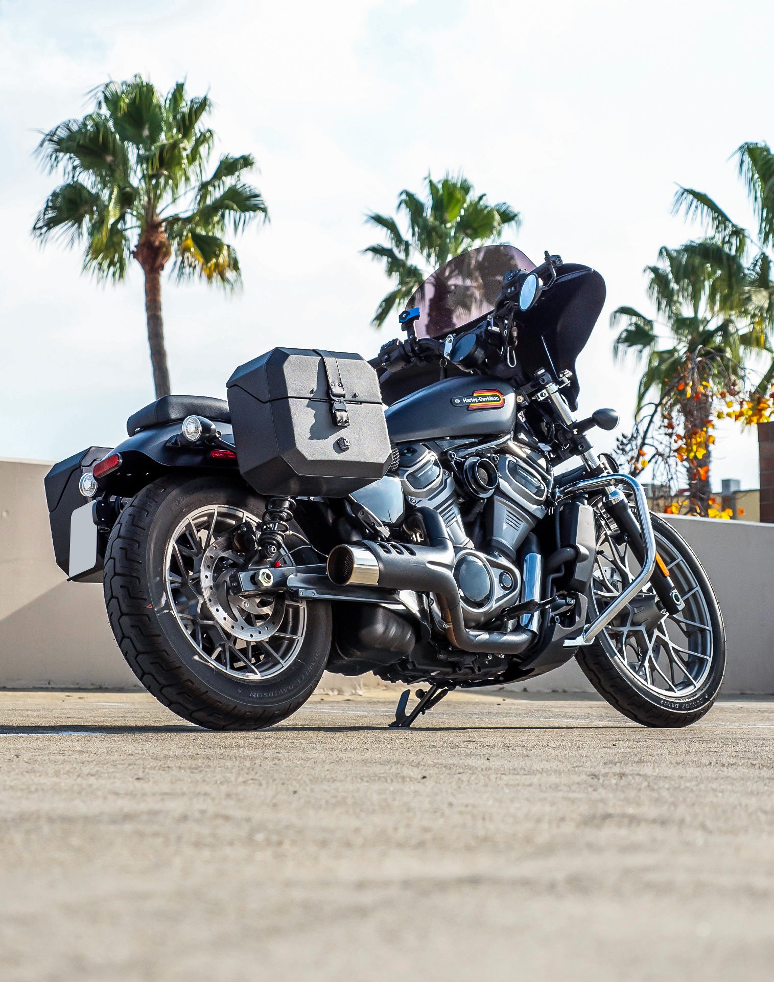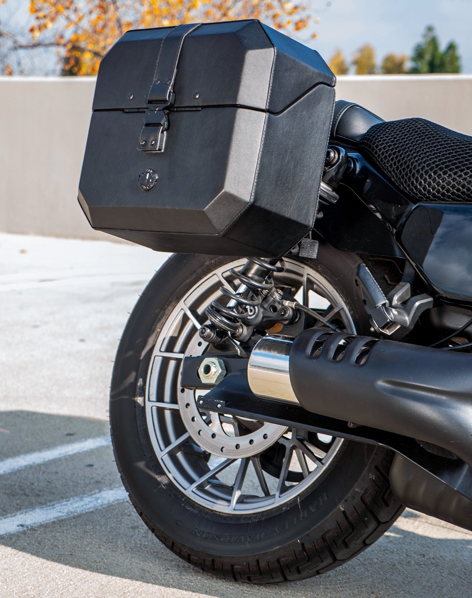20L - Outlaw Quick-Mount Small Harley Sportster Nightster RH975/S Leather Wrapped Hard Saddlebags