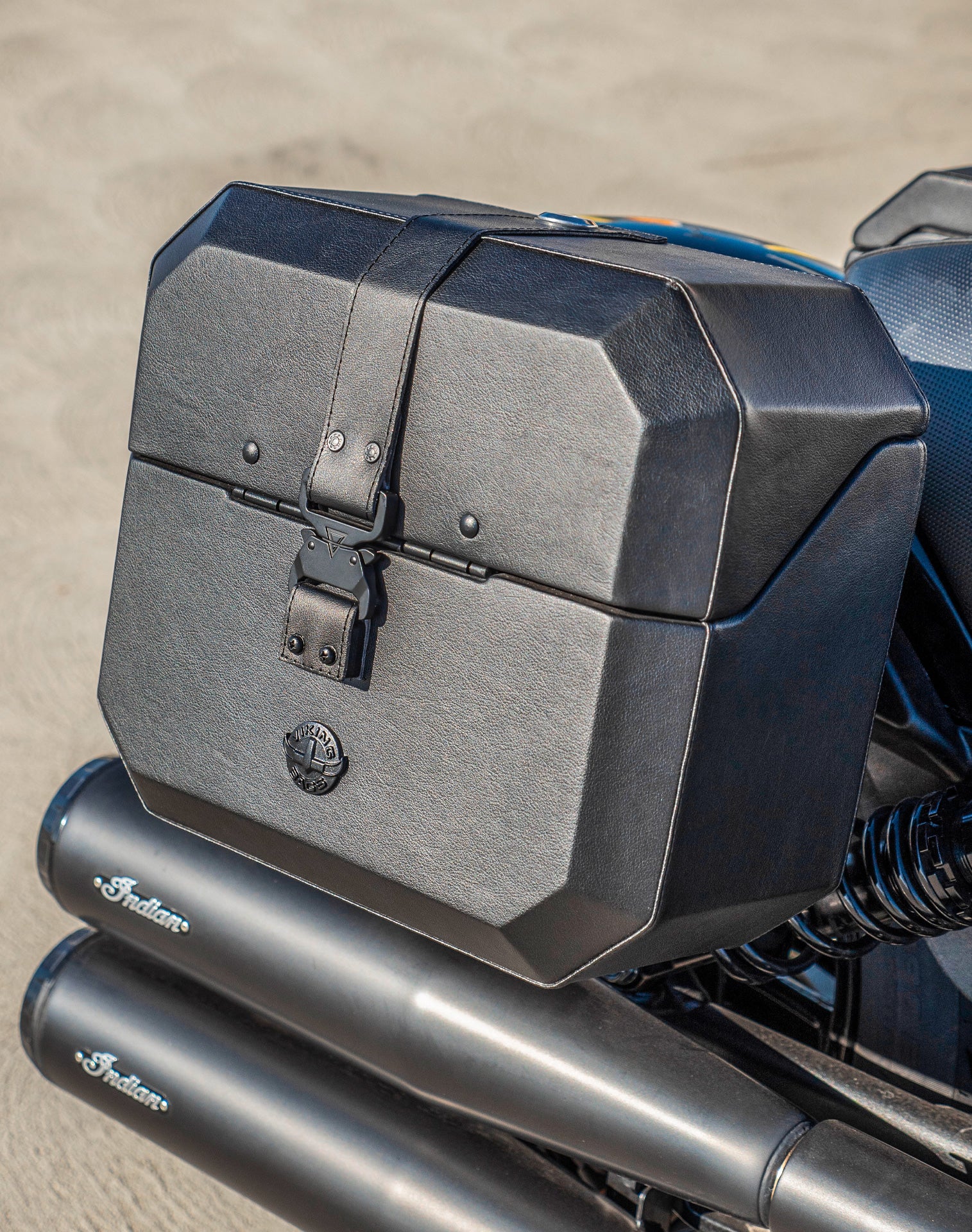 20L - Outlaw Quick-Mount Small Indian Scout Rogue Sixty Leather Wrapped Hard Saddlebags