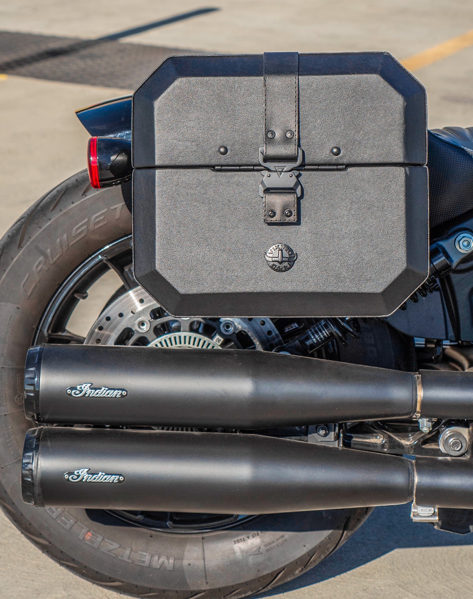20L - Outlaw Quick-Mount Small Indian Scout Rogue Leather Wrapped Hard Saddlebags