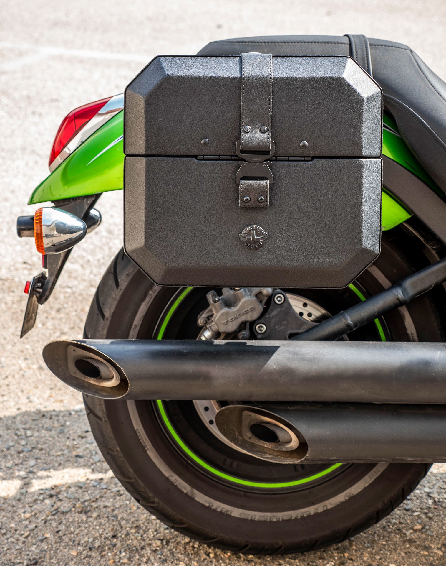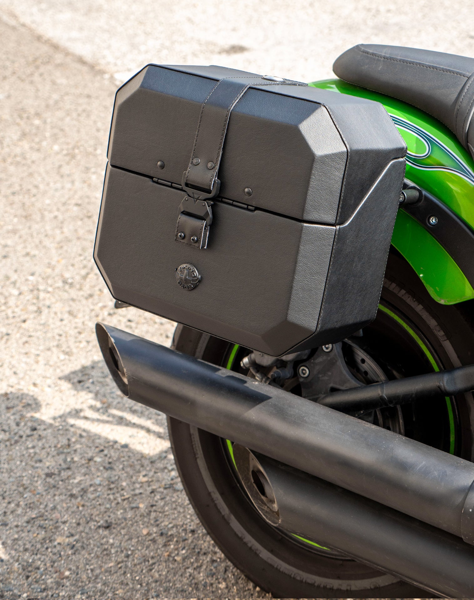 20L - Outlaw Quick-Mount Small Kawasaki Vulcan 900 Custom Leather Wrapped Hard Saddlebags