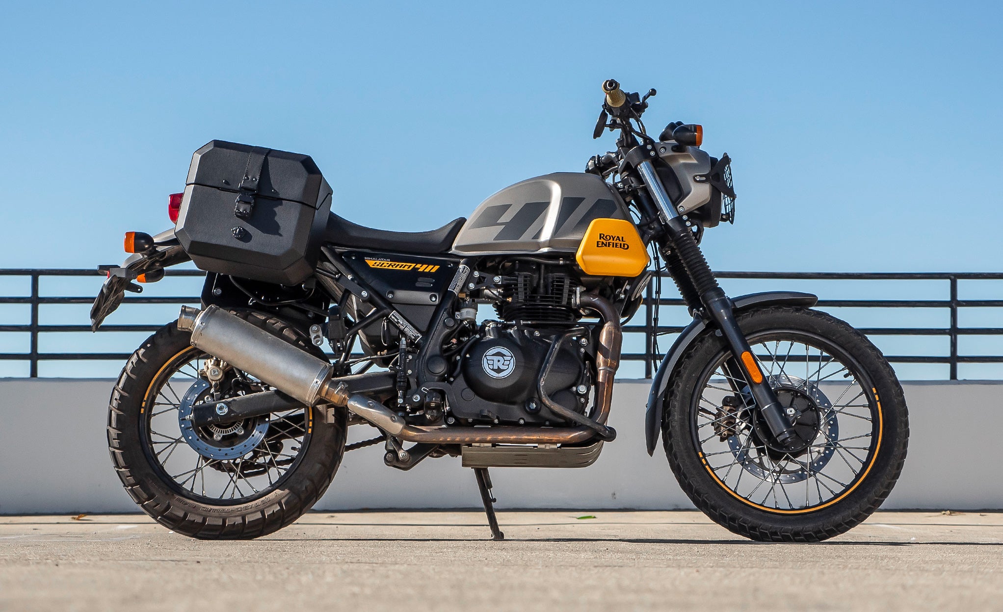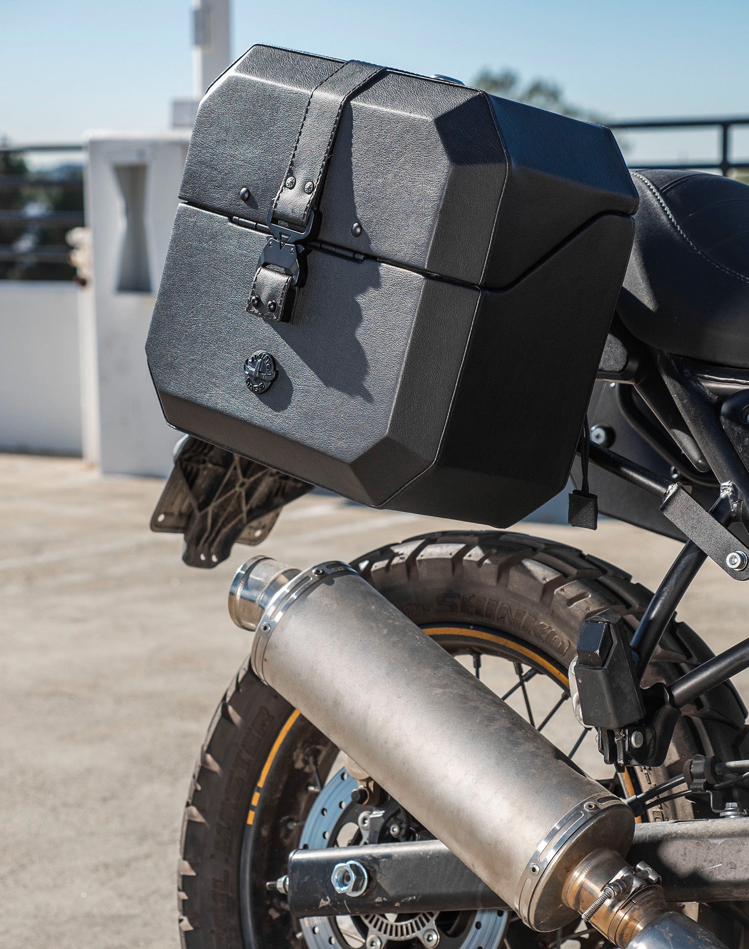 20L - Outlaw Quick-Mount Small Royal Enfield Scram 411 Leather Wrapped Hard Saddlebags