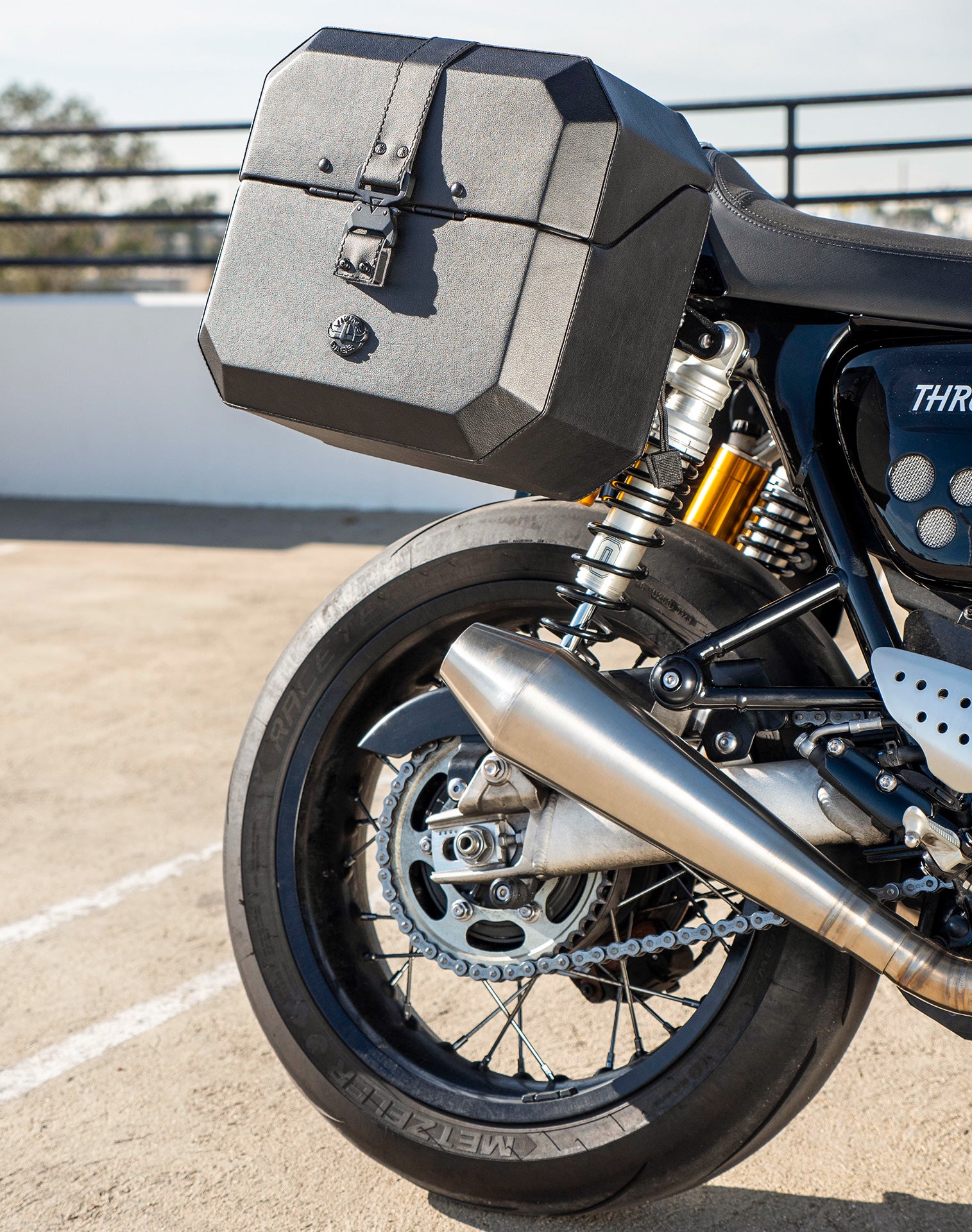 20L - Outlaw Quick-Mount Small Triumph Thruxton RS Leather Wrapped Hard Saddlebags