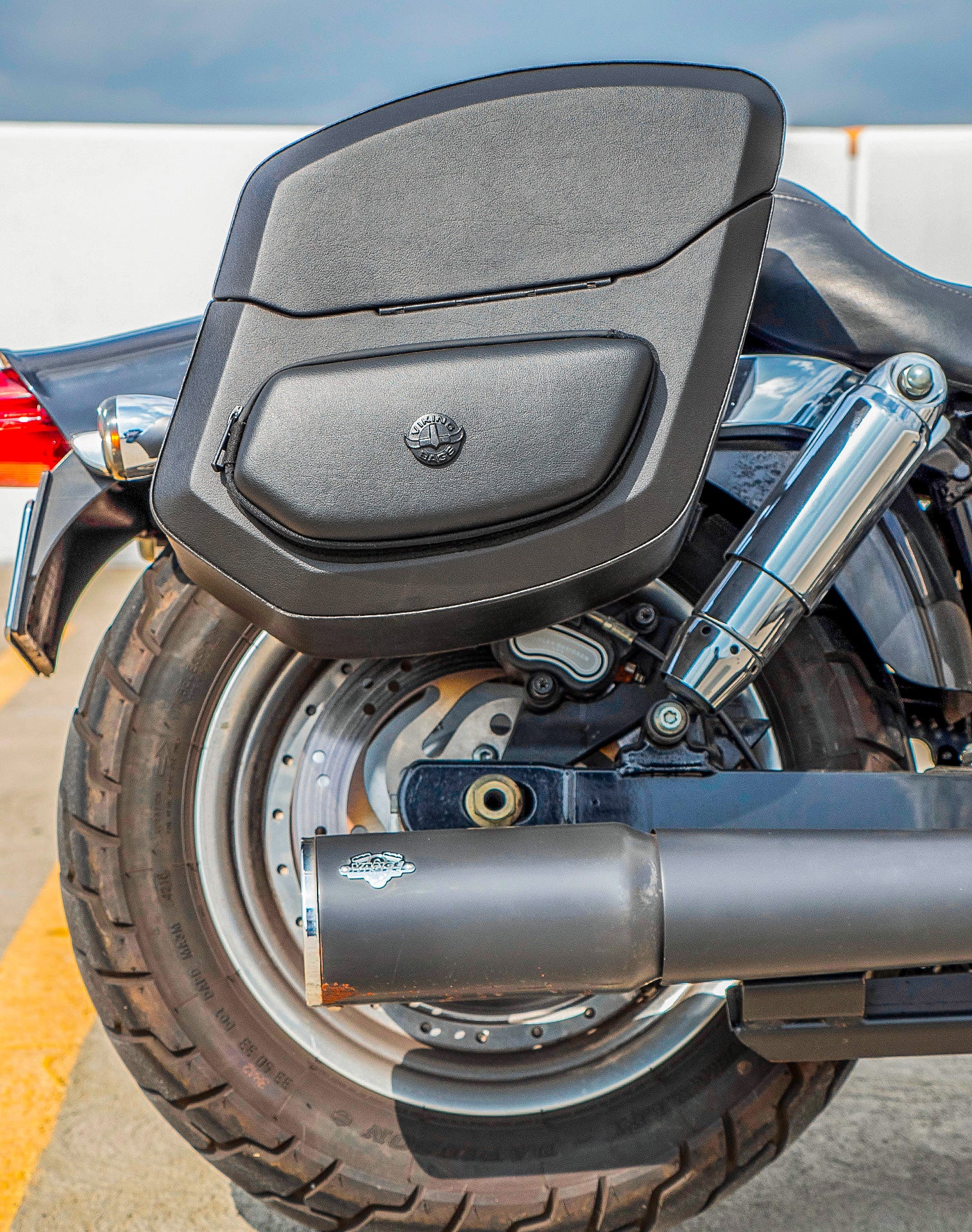 24L - Ironclad Quick-Mount Medium Harley Dyna Fat Bob FXDF Leather Wrapped Hard Saddlebags