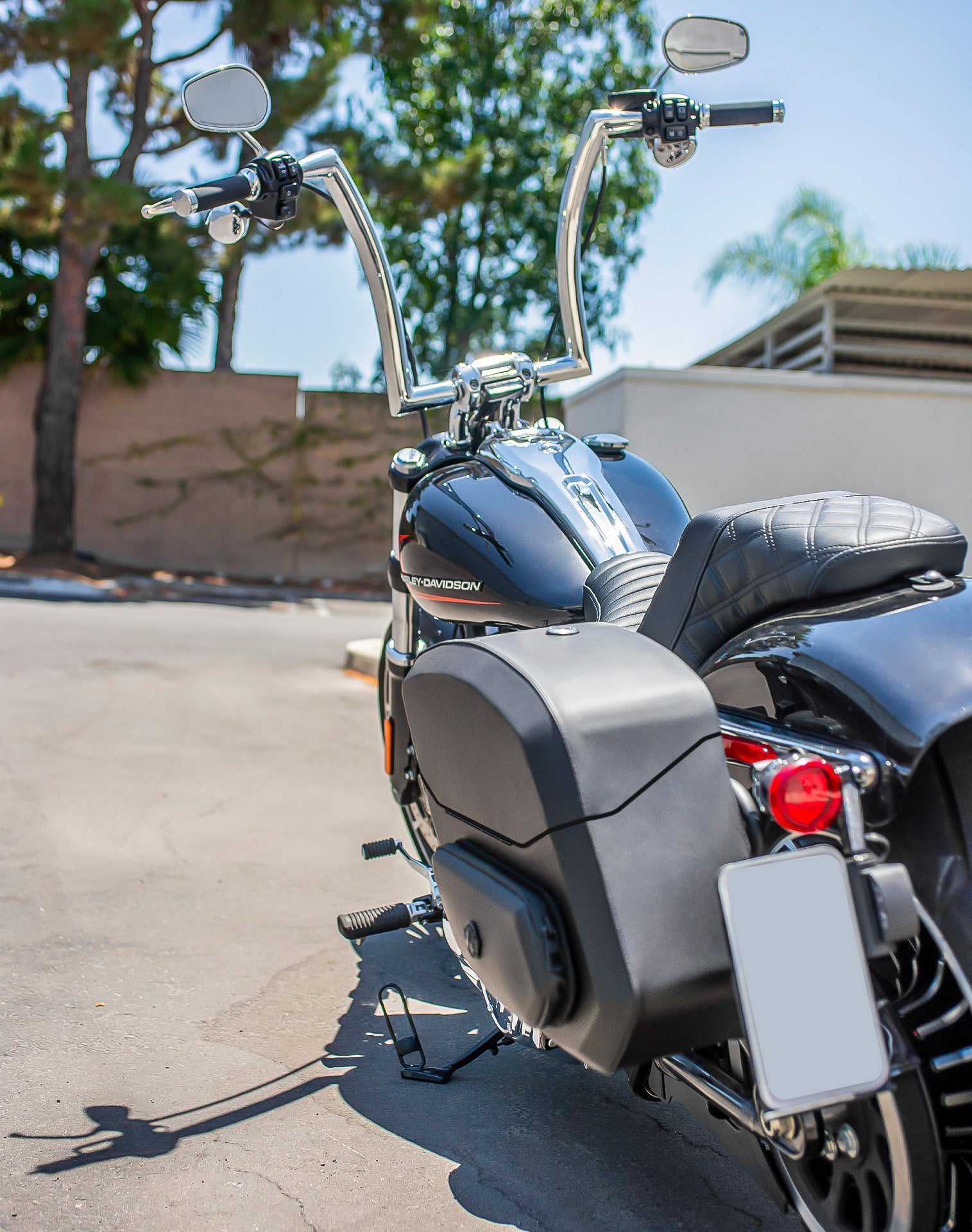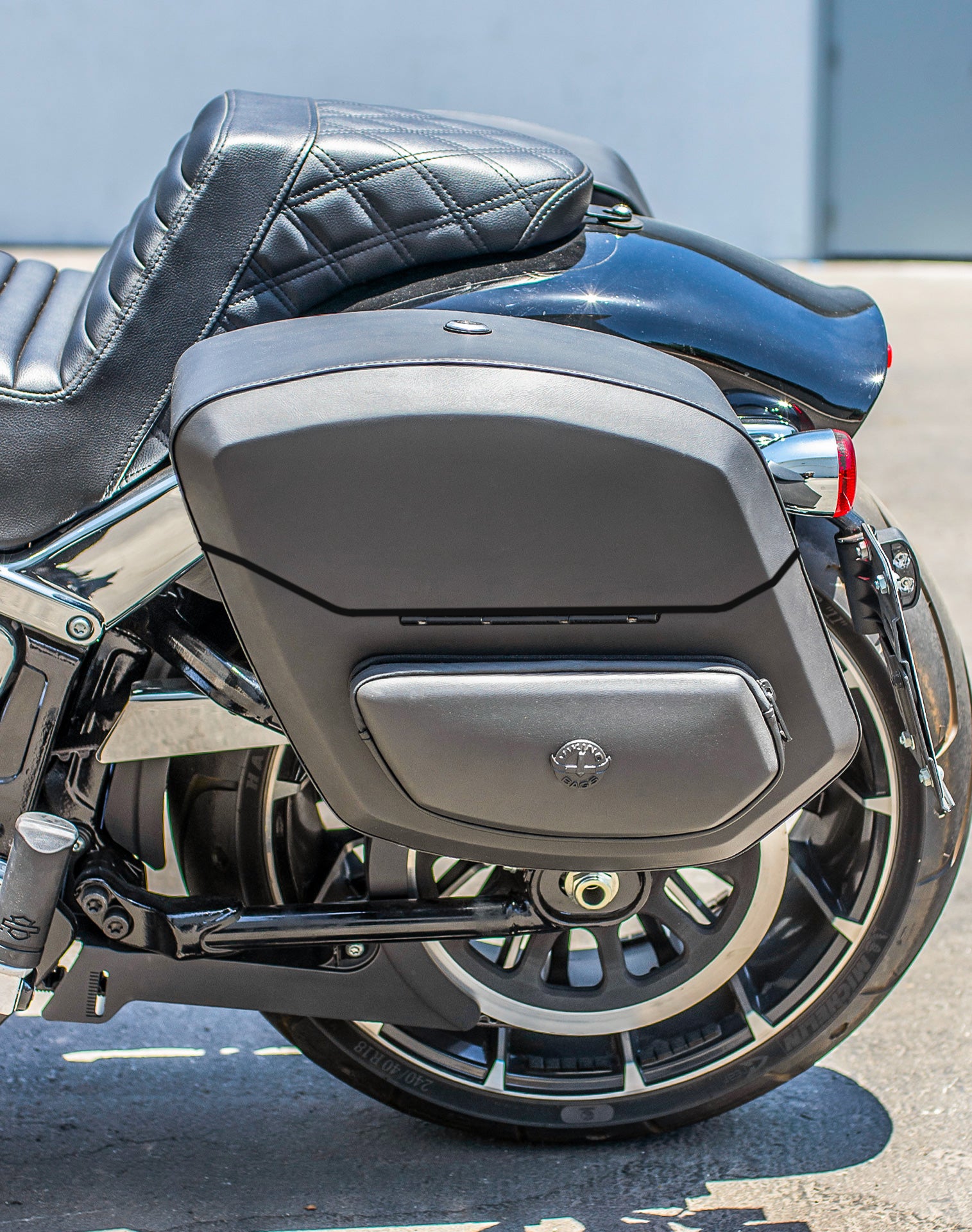 24L - Ironclad Quick-Mount Medium Harley Softail Breakout FXBR/S Leather Wrapped Hard Saddlebags