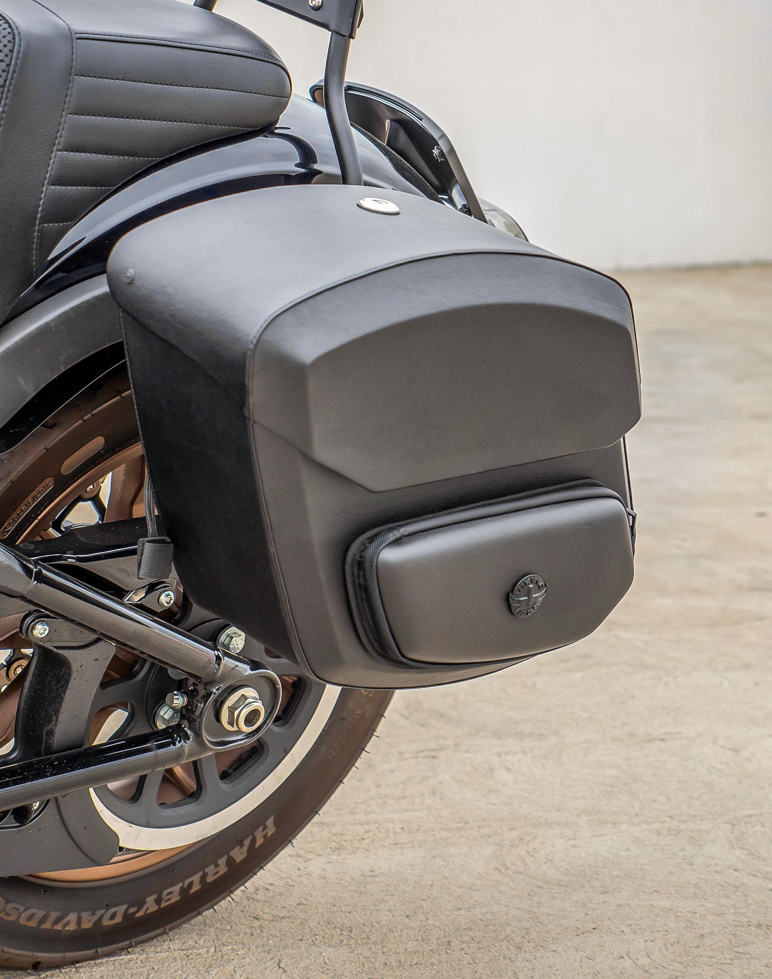 24L - Ironclad Quick-Mount Medium Harley Softail Low Rider S FXLRS Leather Wrapped Hard Saddlebags
