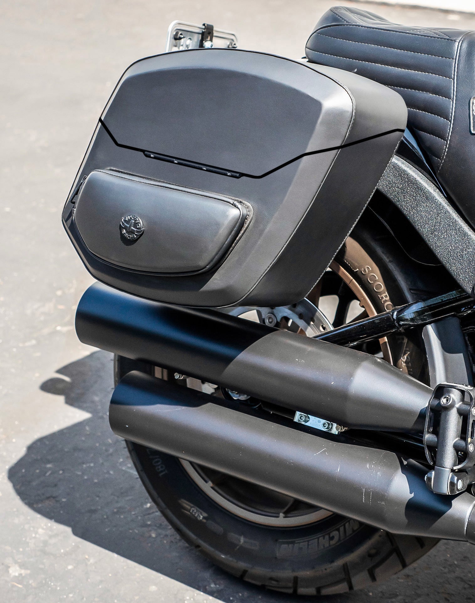 24L - Ironclad Quick-Mount Medium Harley Softail Low Rider ST Leather Wrapped Hard Saddlebags