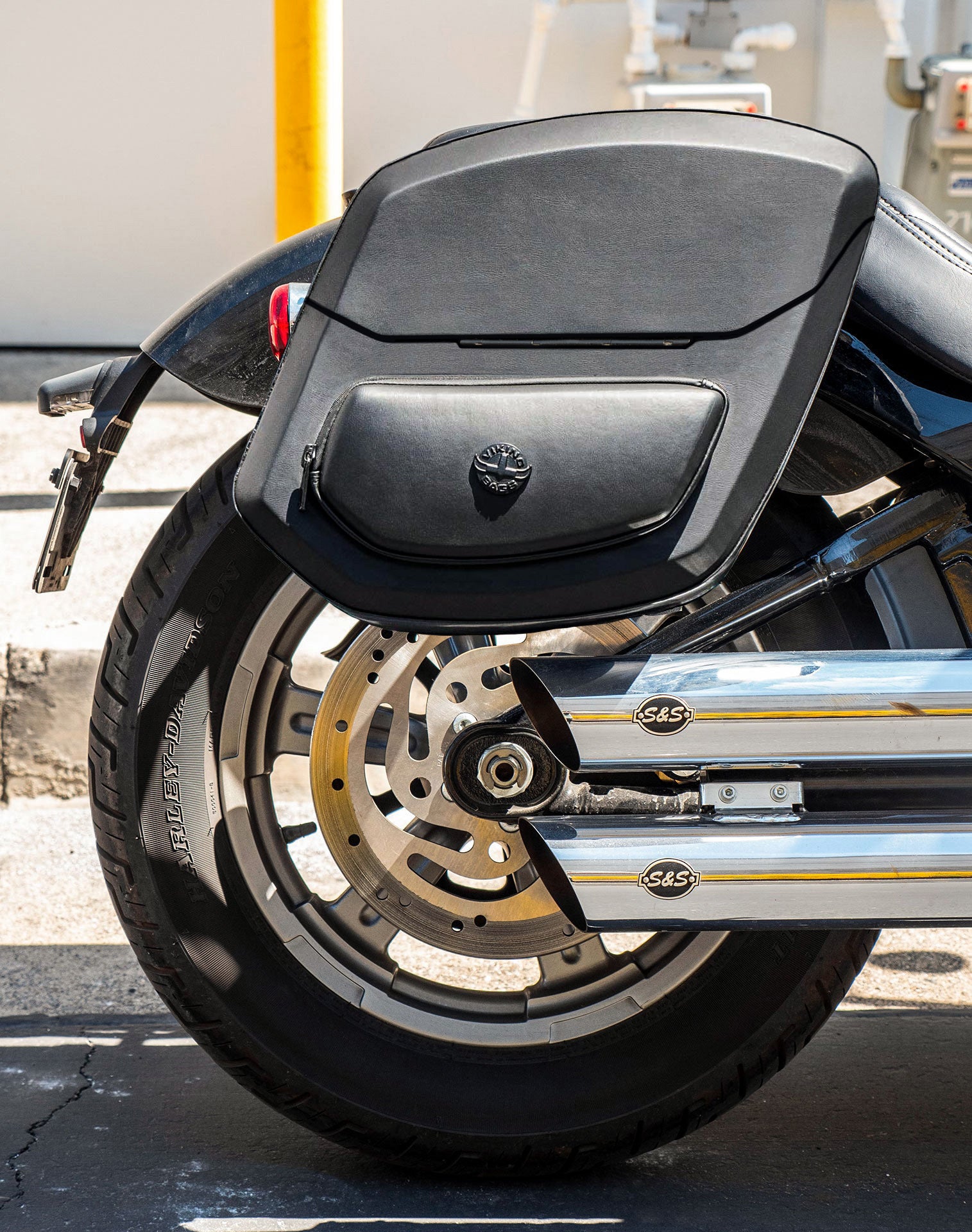 24L - Ironclad Quick-Mount Medium Harley Softail Standard FXST Leather Wrapped Hard Saddlebags