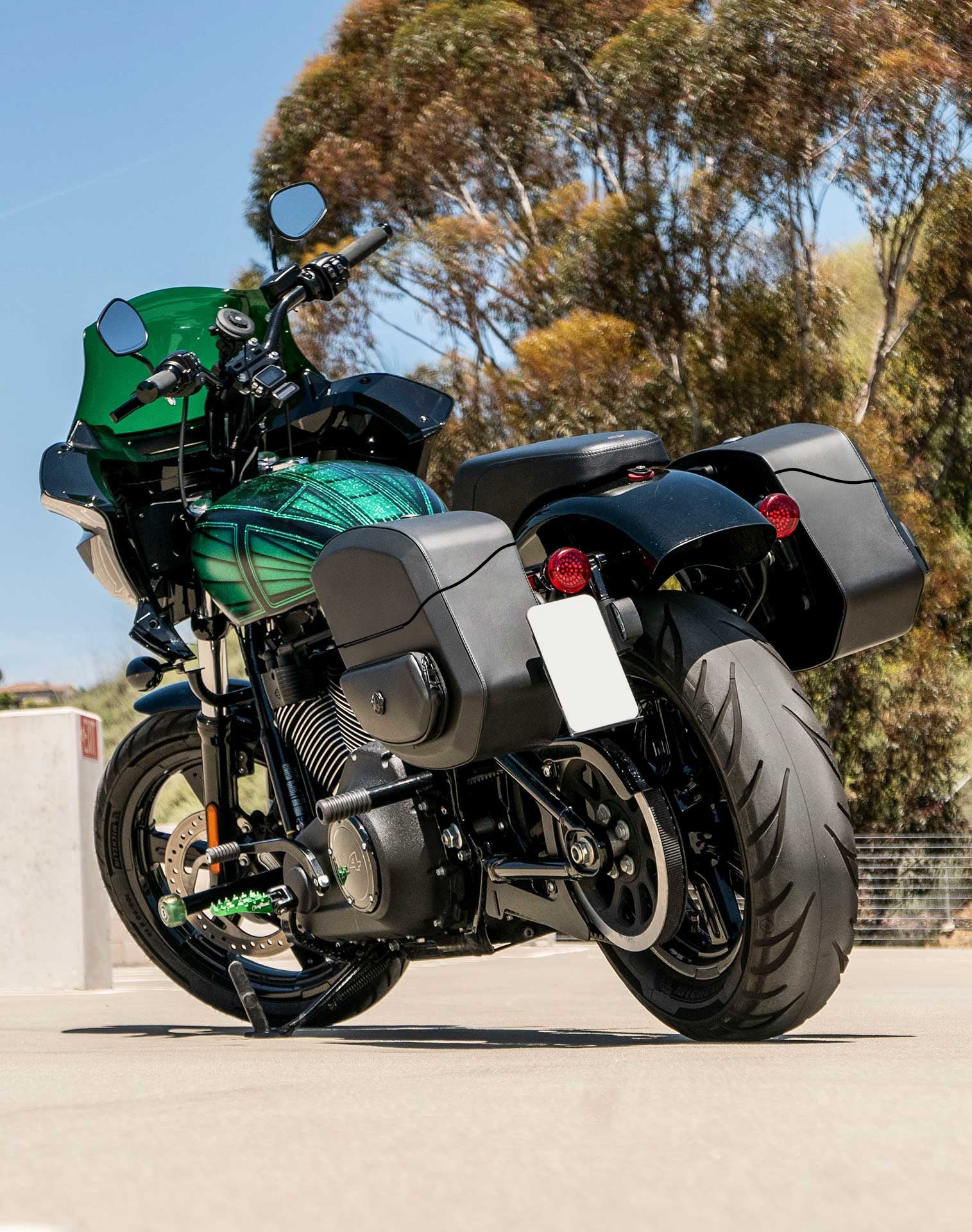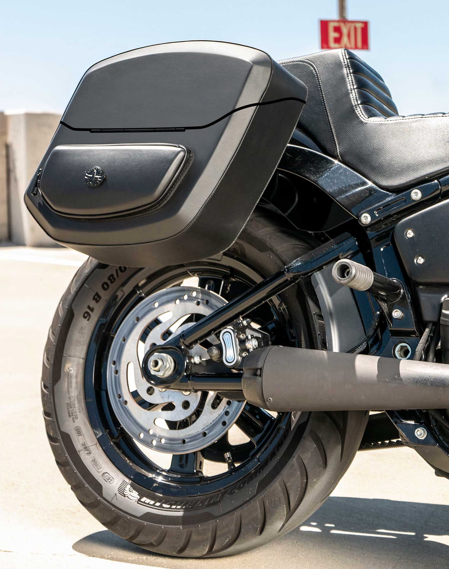 24L - Ironclad Quick-Mount Medium Harley Softail Street Bob Leather Wrapped Hard Saddlebags