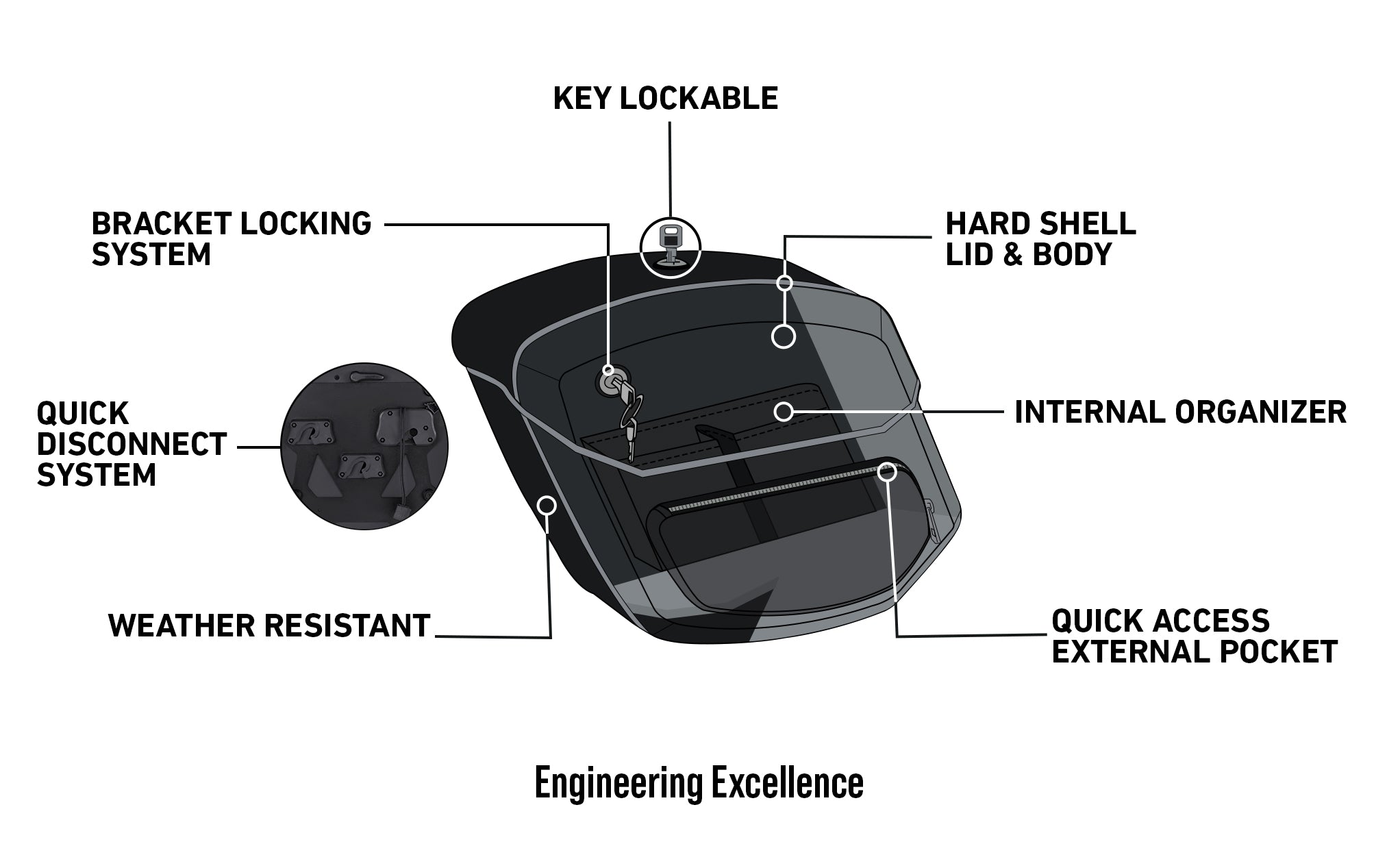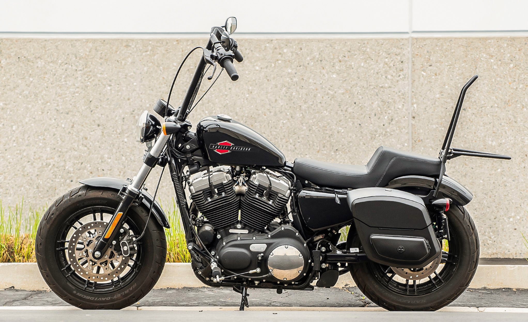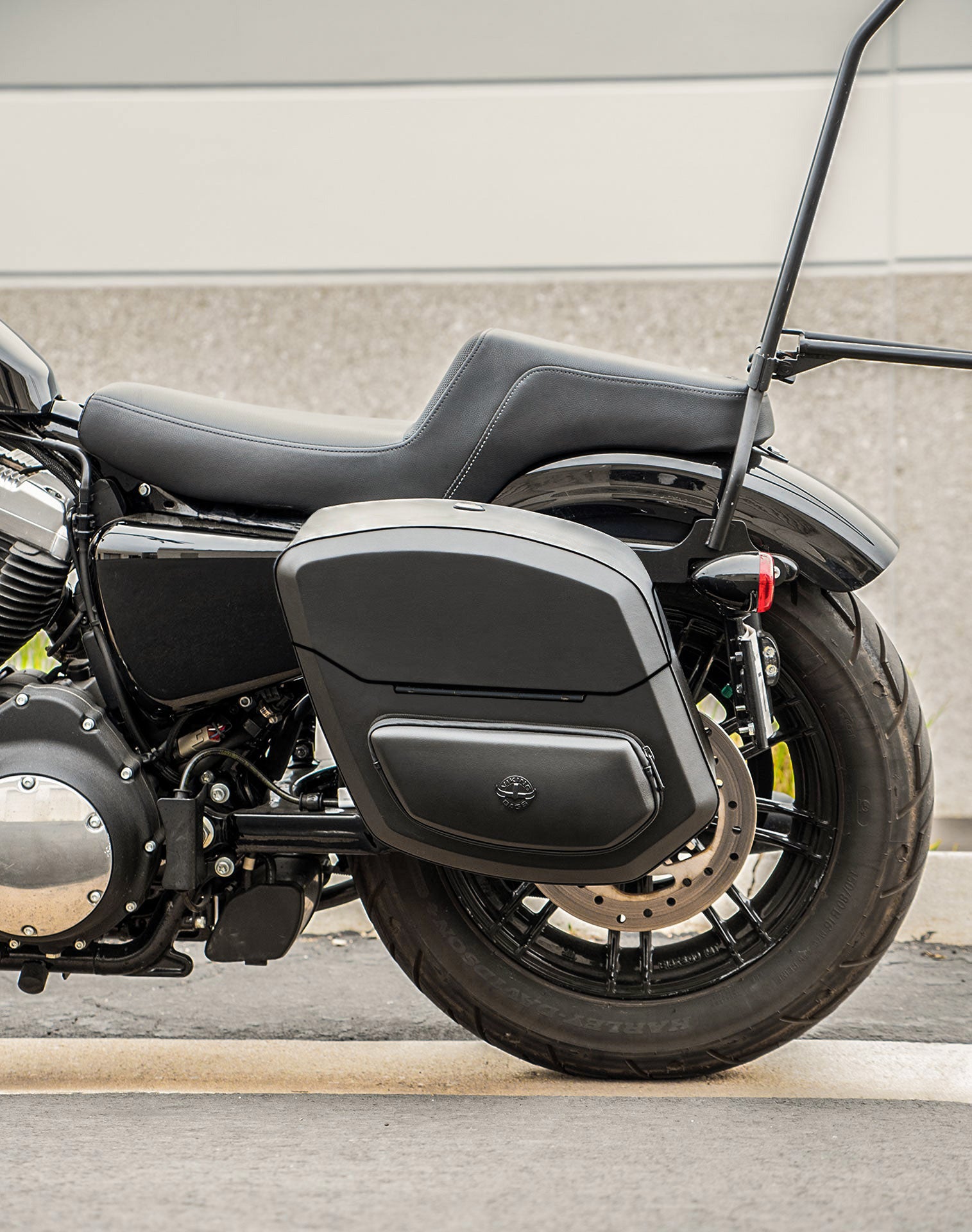 24L - Ironclad Quick-Mount Medium Harley Sportster Forty Eight XL1200X Leather Wrapped Hard Saddlebags