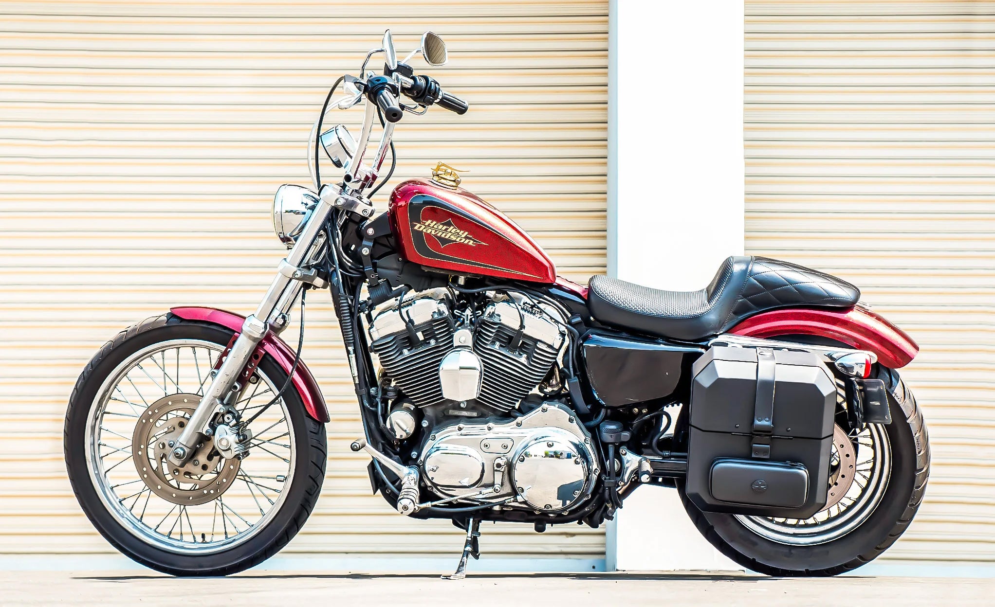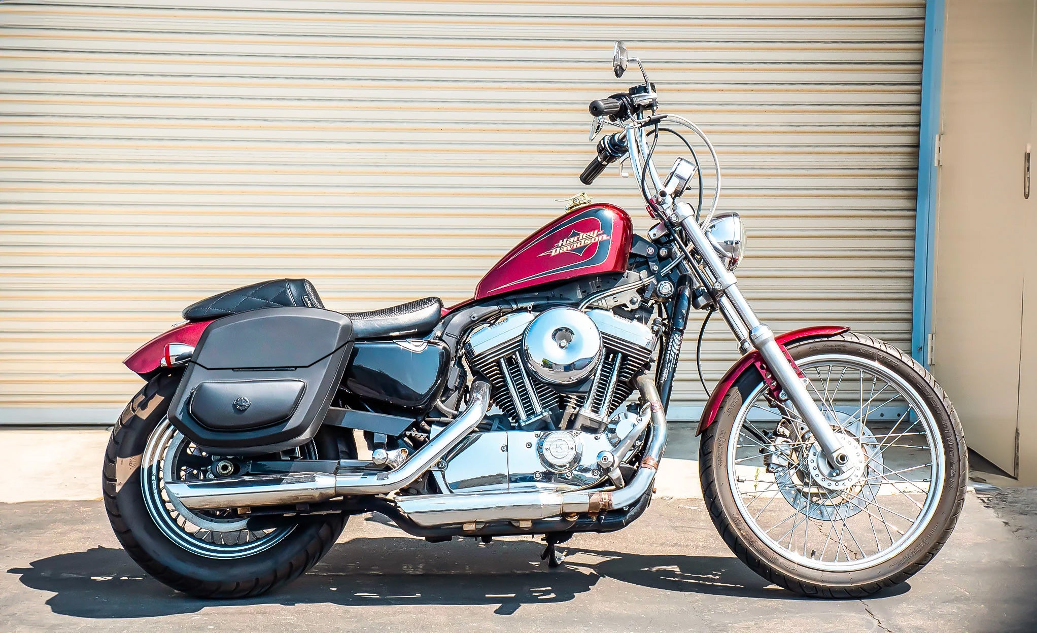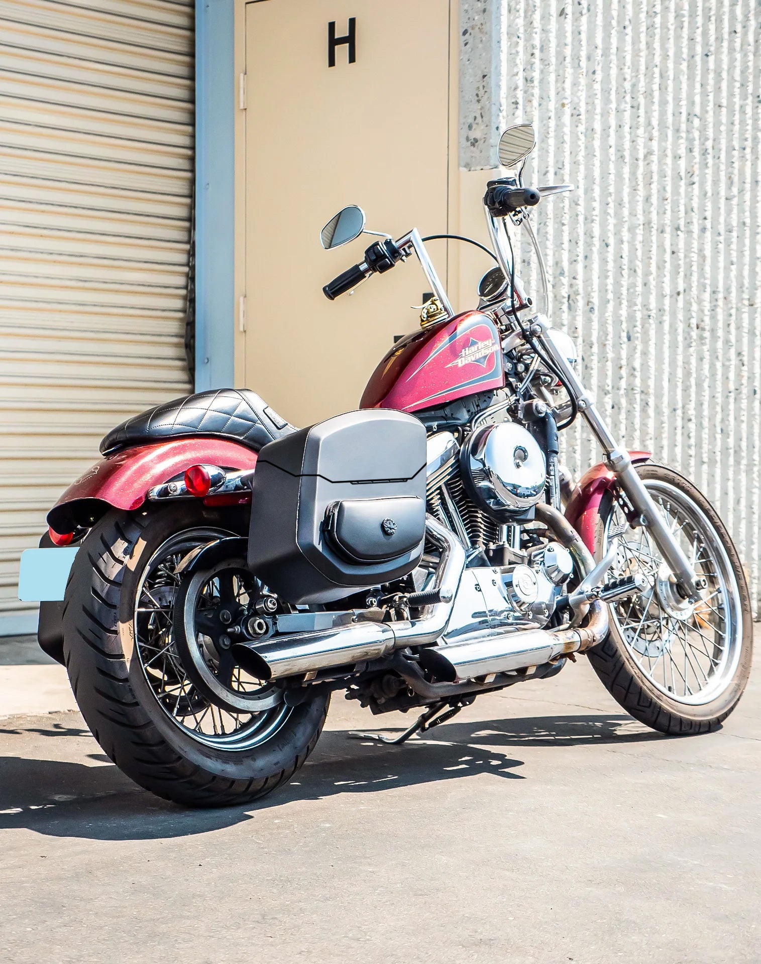 24L - Ironclad Quick-Mount Medium Harley Sportster Seventy Two XL1200V Leather Wrapped Hard Saddlebags