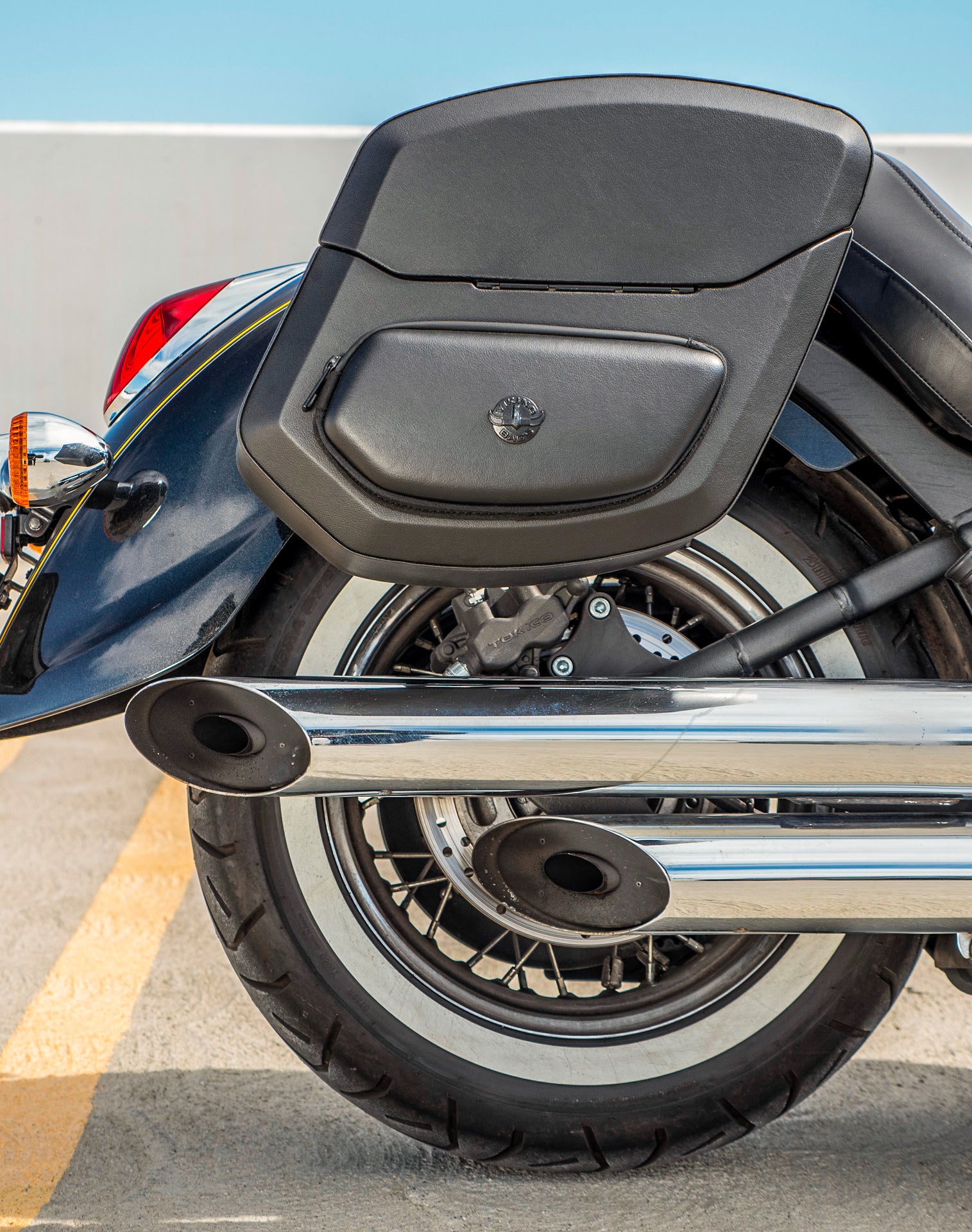 24L - Ironclad Quick-Mount Medium Kawasaki Vulcan 900 Classic VN900 Leather Wrapped Hard Saddlebags