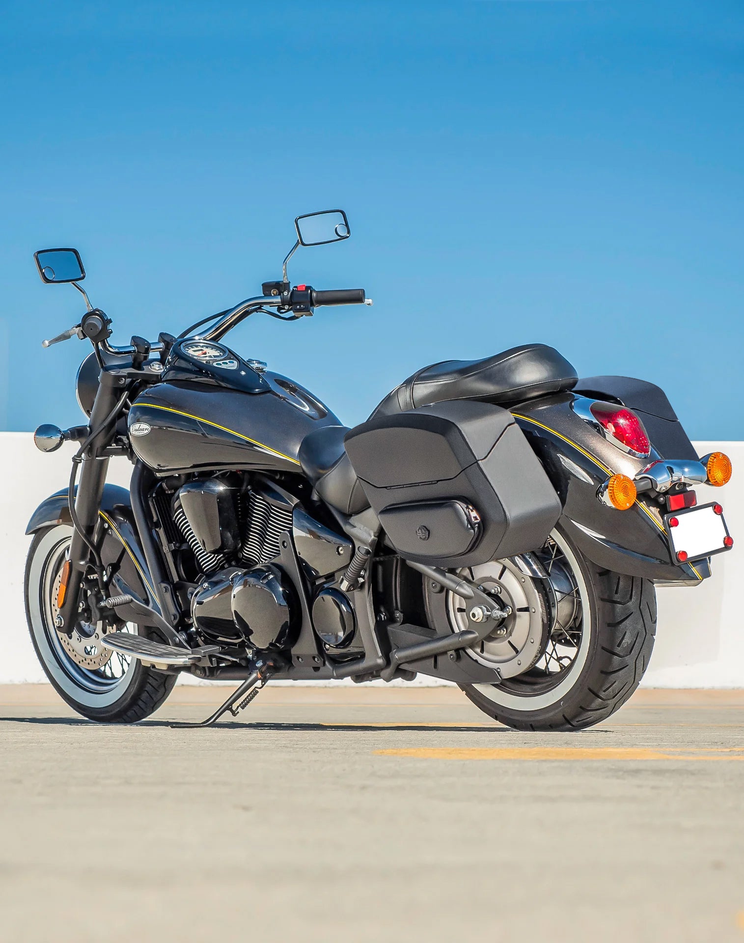 24L - Ironclad Quick-Mount Medium Kawasaki Vulcan 900 Classic VN900 Leather Wrapped Hard Saddlebags