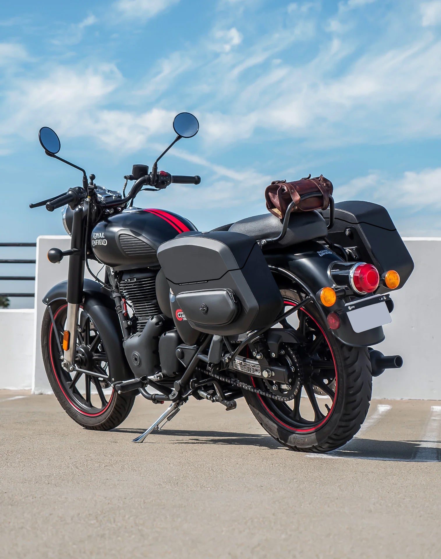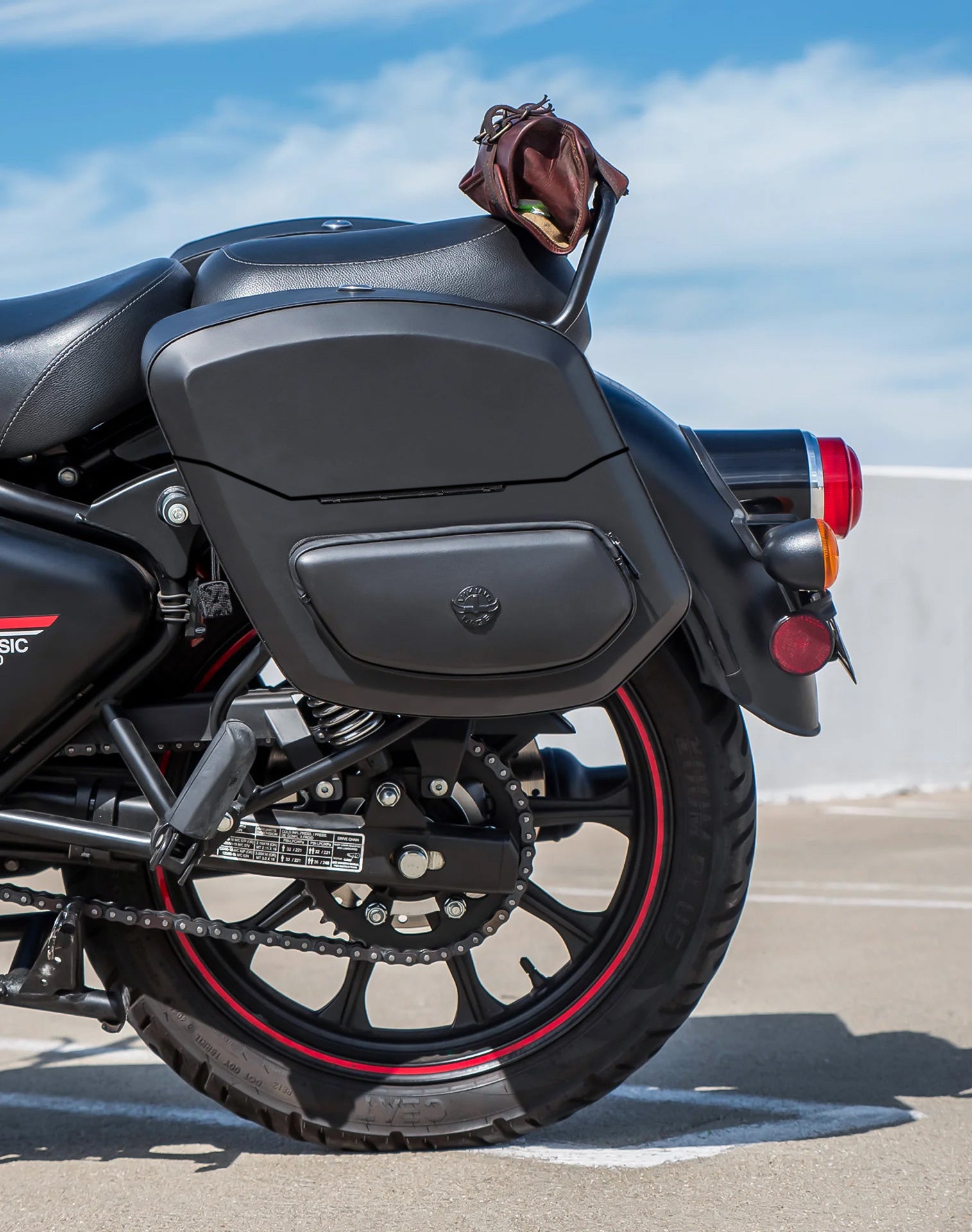 24L - Ironclad Quick-Mount Medium Royal Enfield Classic 350 Leather Wrapped Hard Saddlebags