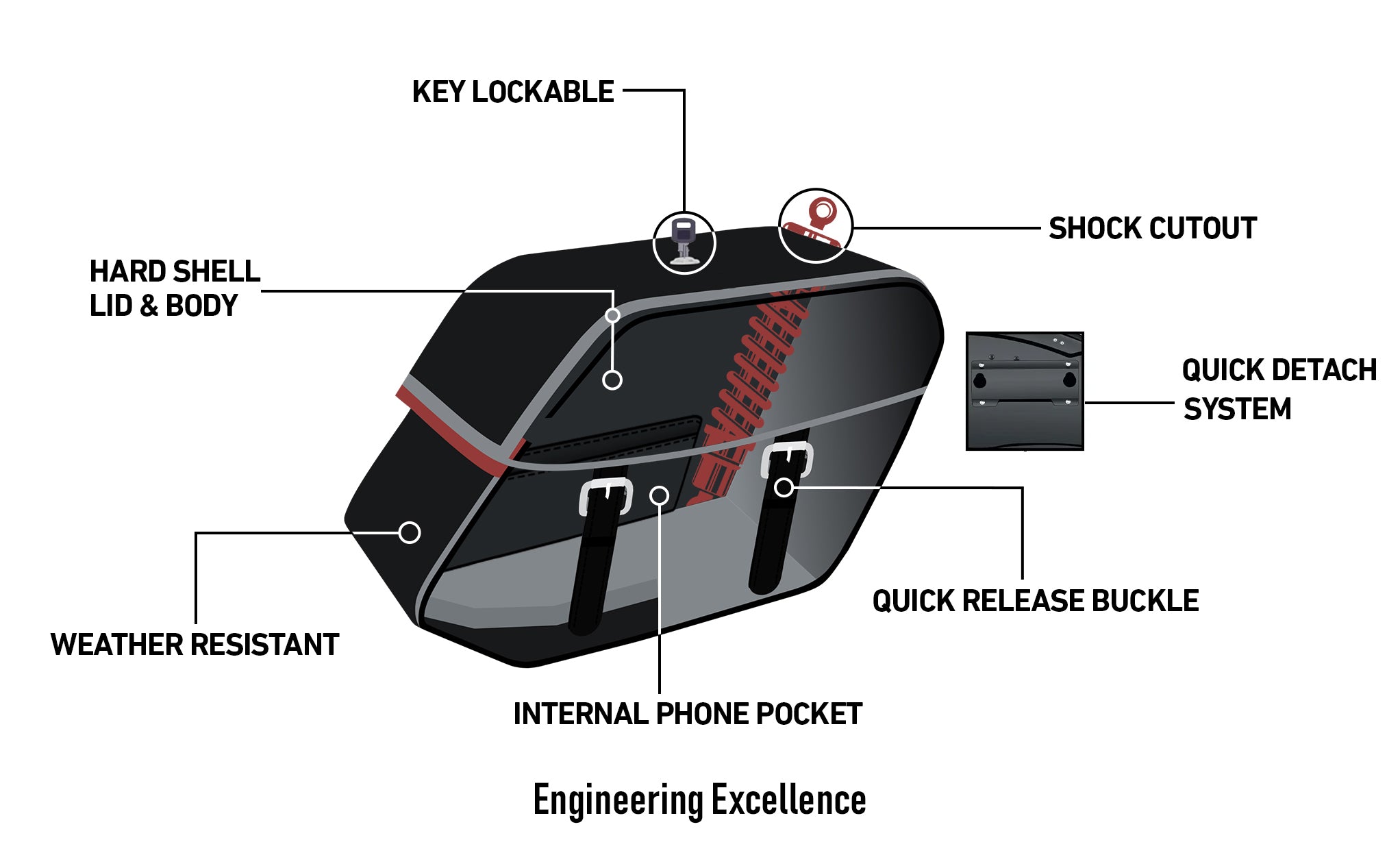22L - Buckler Quick Mount Medium Shock Cutout Saddlebags for Harley Dyna Low Rider S FXDLS