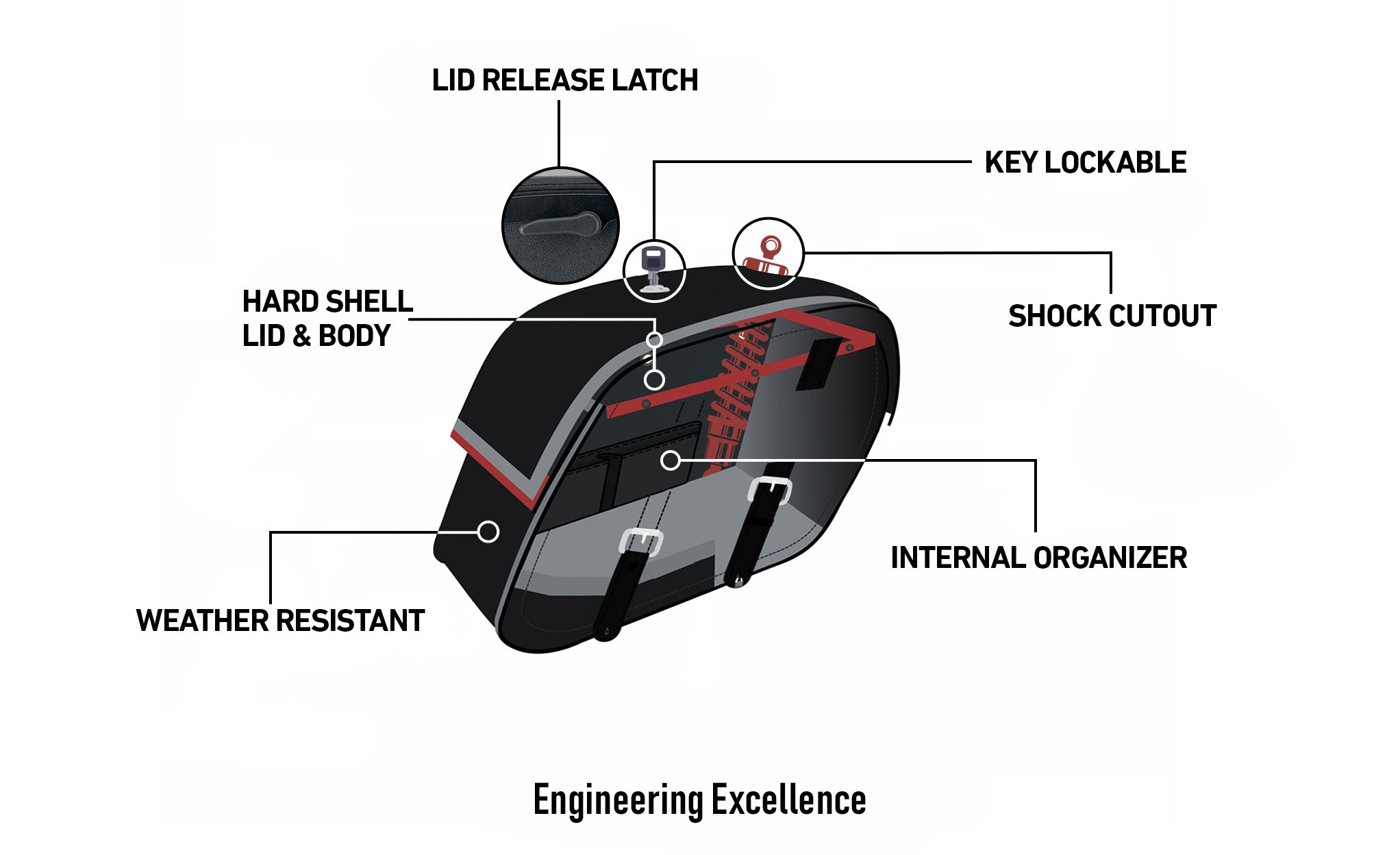 28L - Baelor Medium Hard Mount Honda VTX 1300 S Motorcycle Saddlebags