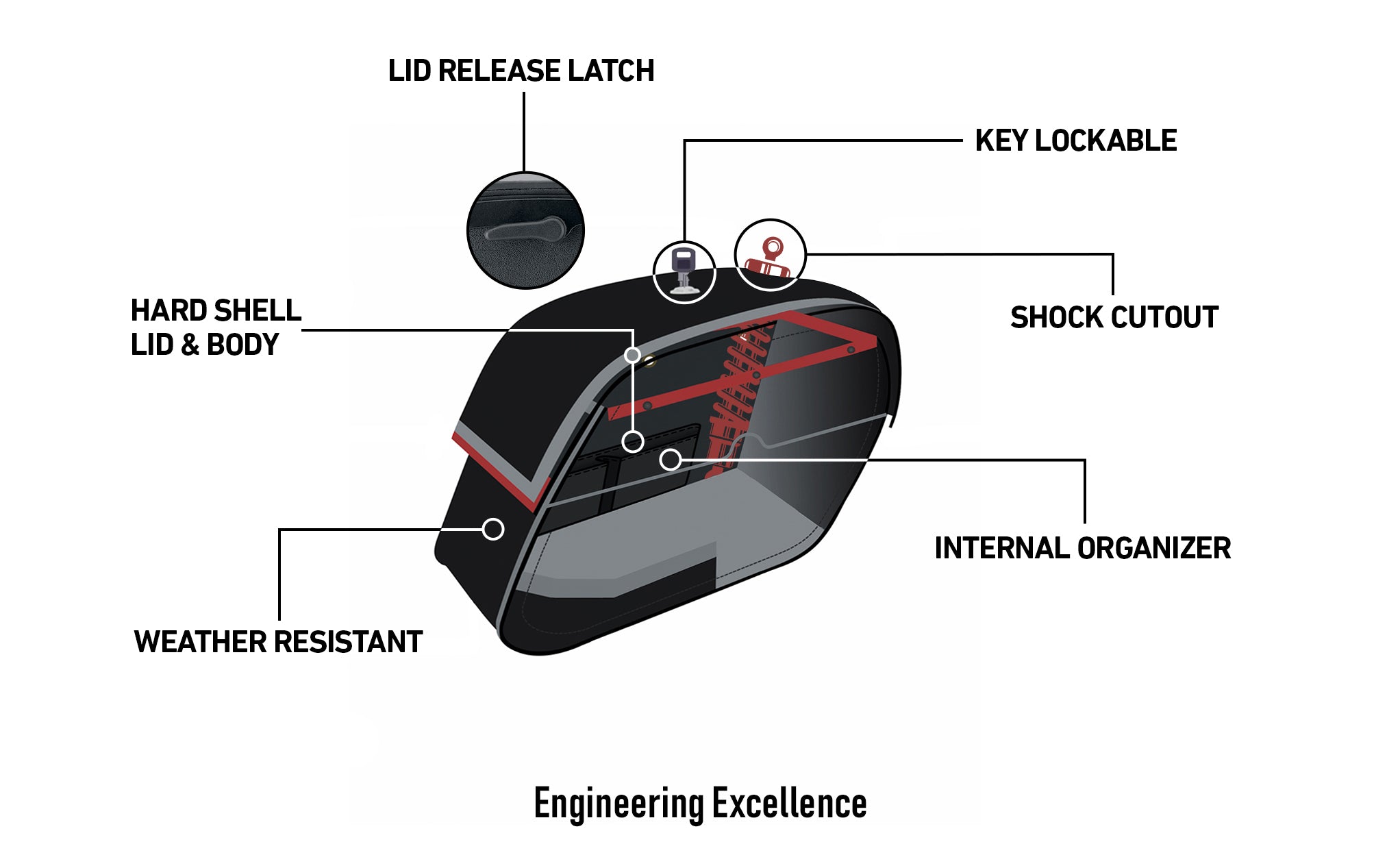 32L - Panzer Large Hard Mount Shock Cutout Saddlebags for Harley Street 500 XG500