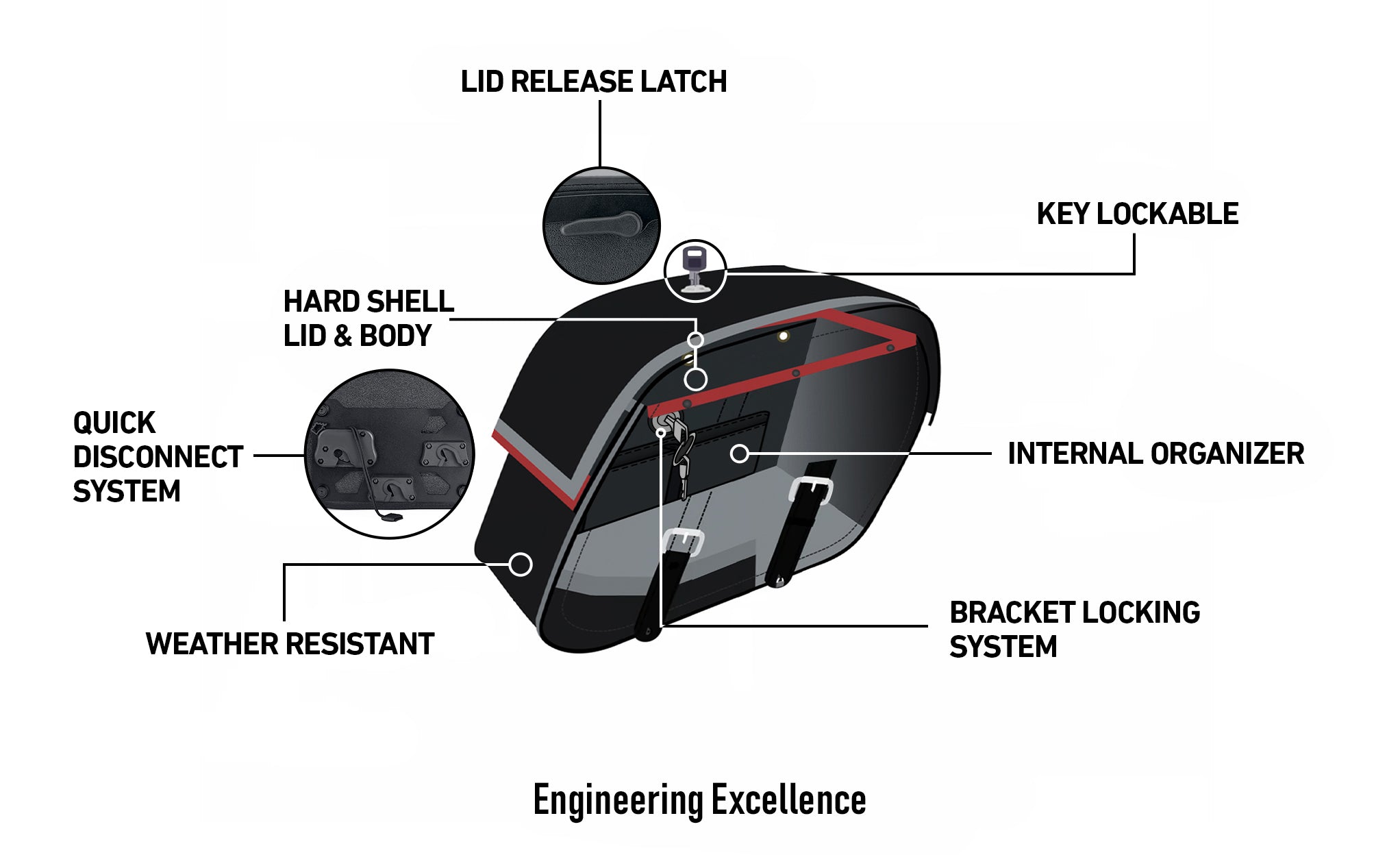 28L - Baelor Medium Quick Mount Motorcycle Saddlebags For Harley Sportster 1200 Nightster XL1200N