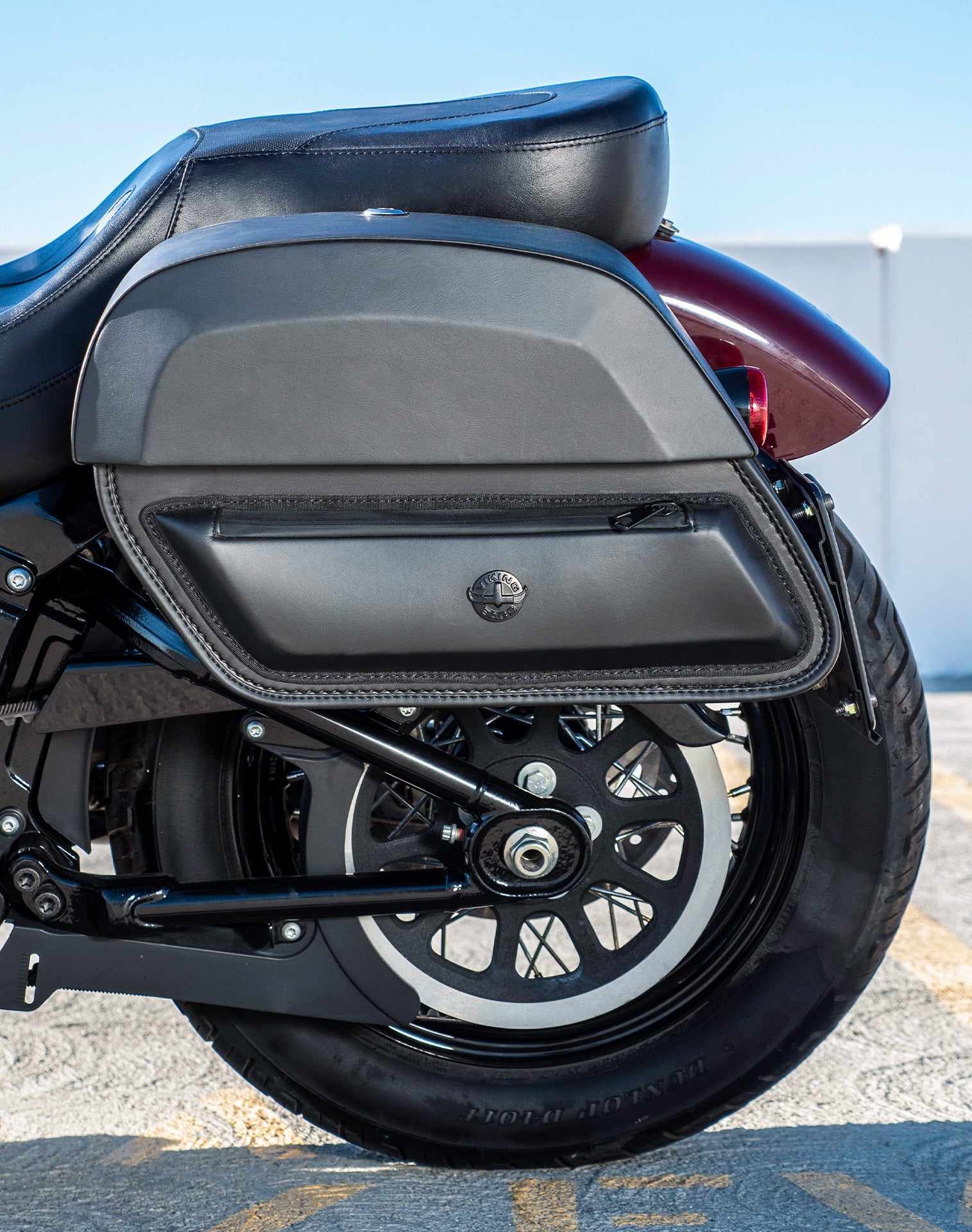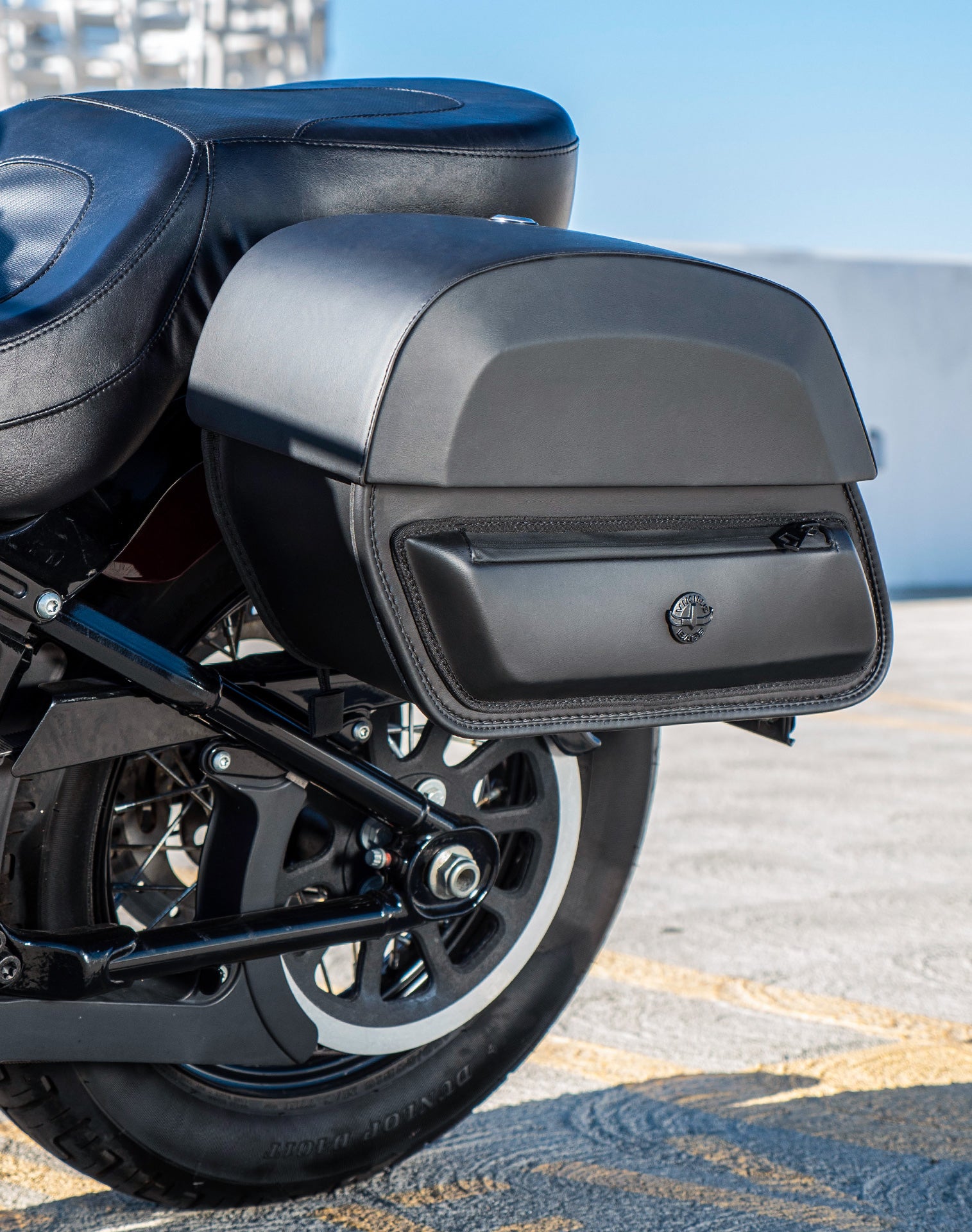 28L - Pantheon Medium Quick Mount Motorcycle Saddlebags For Harley Softail Slim FLSL