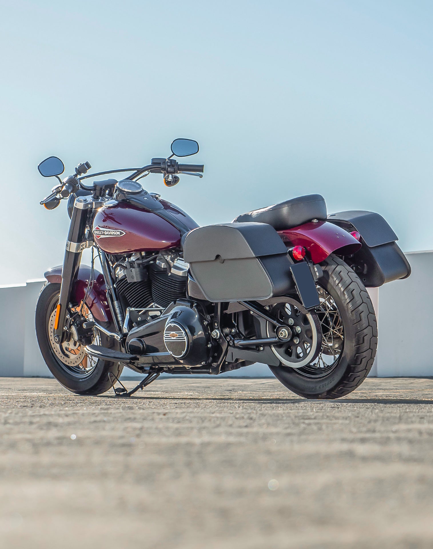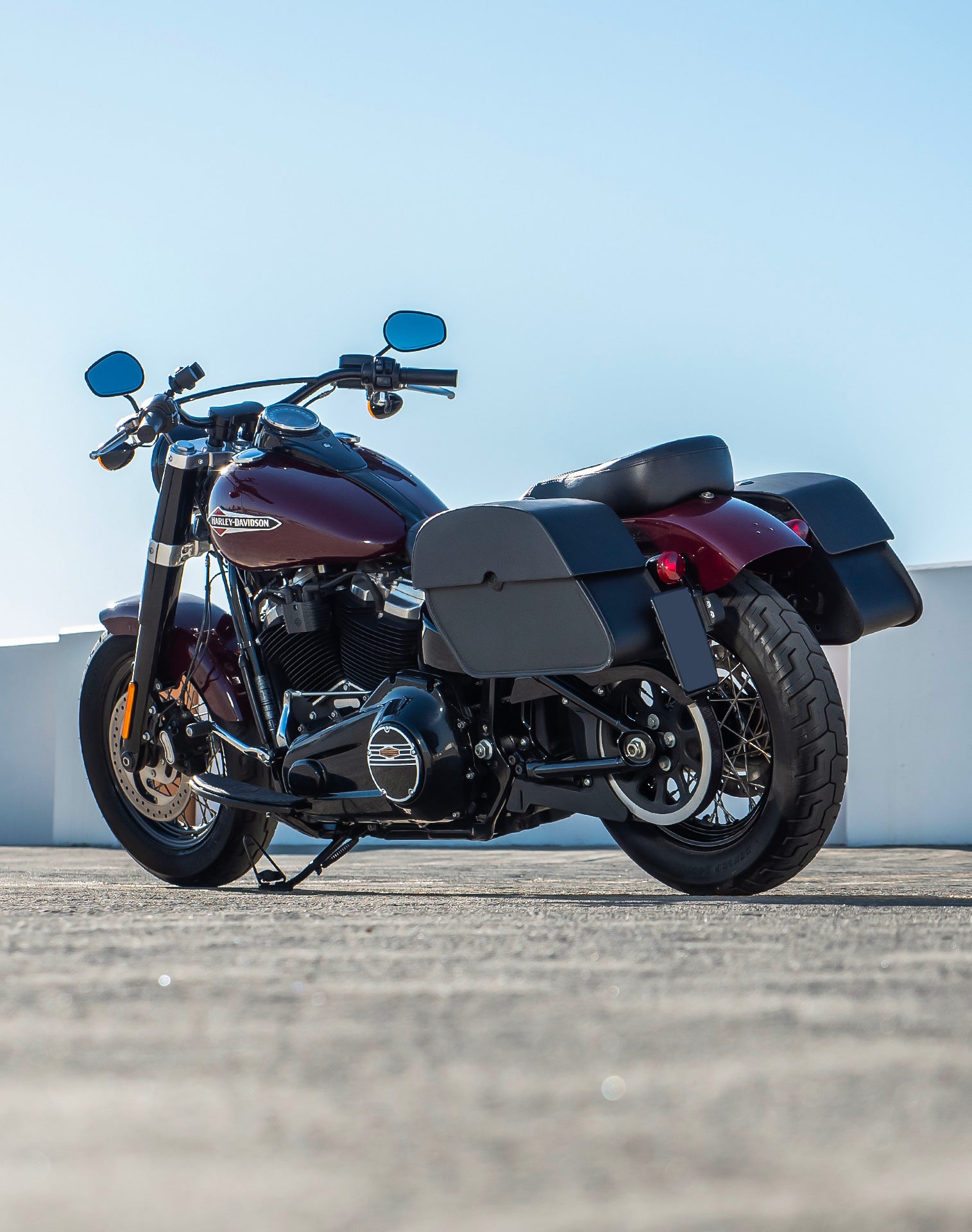 28L - Panzer Medium Quick Mount Leather Saddlebags For Harley Softail Slim FLSL