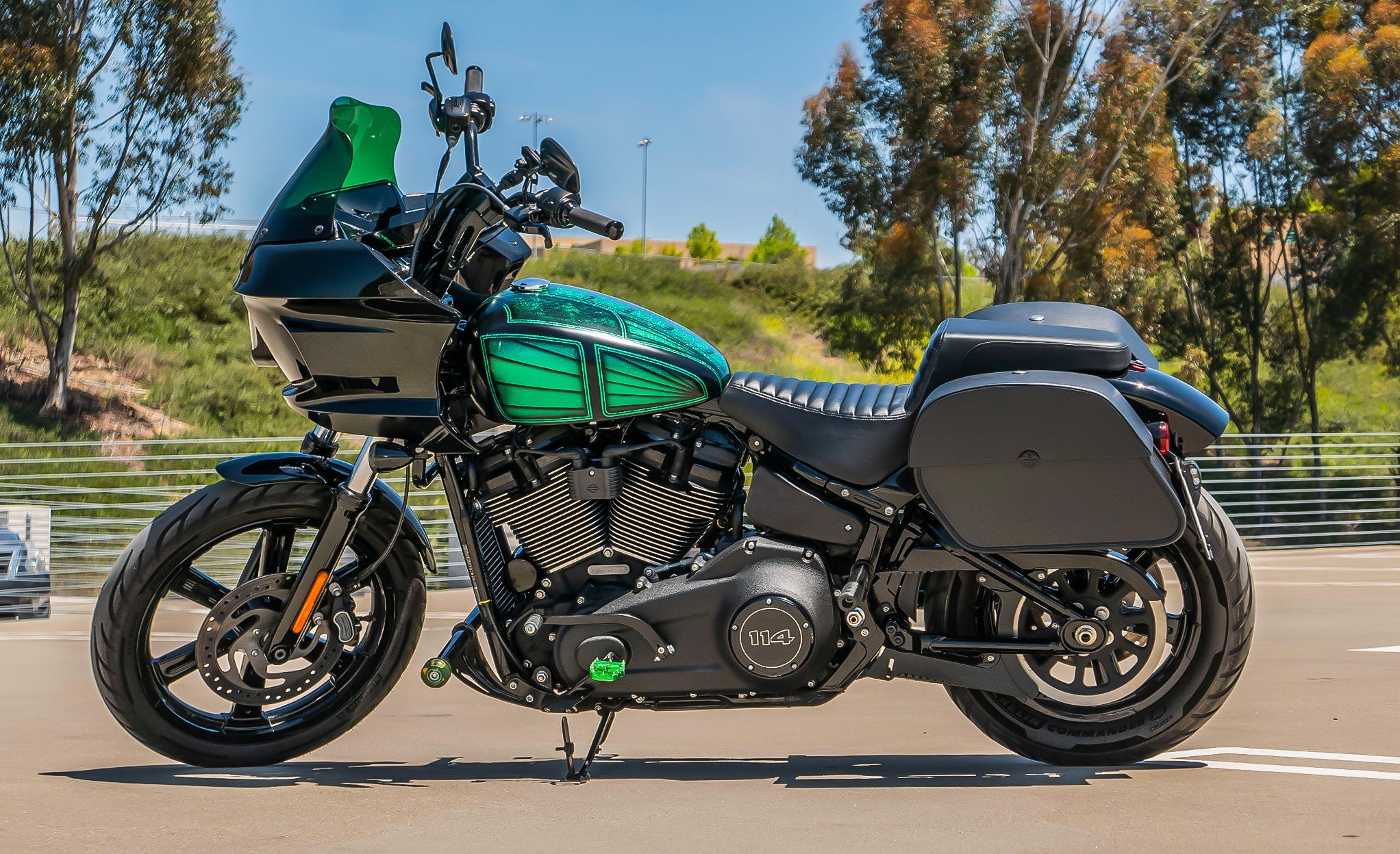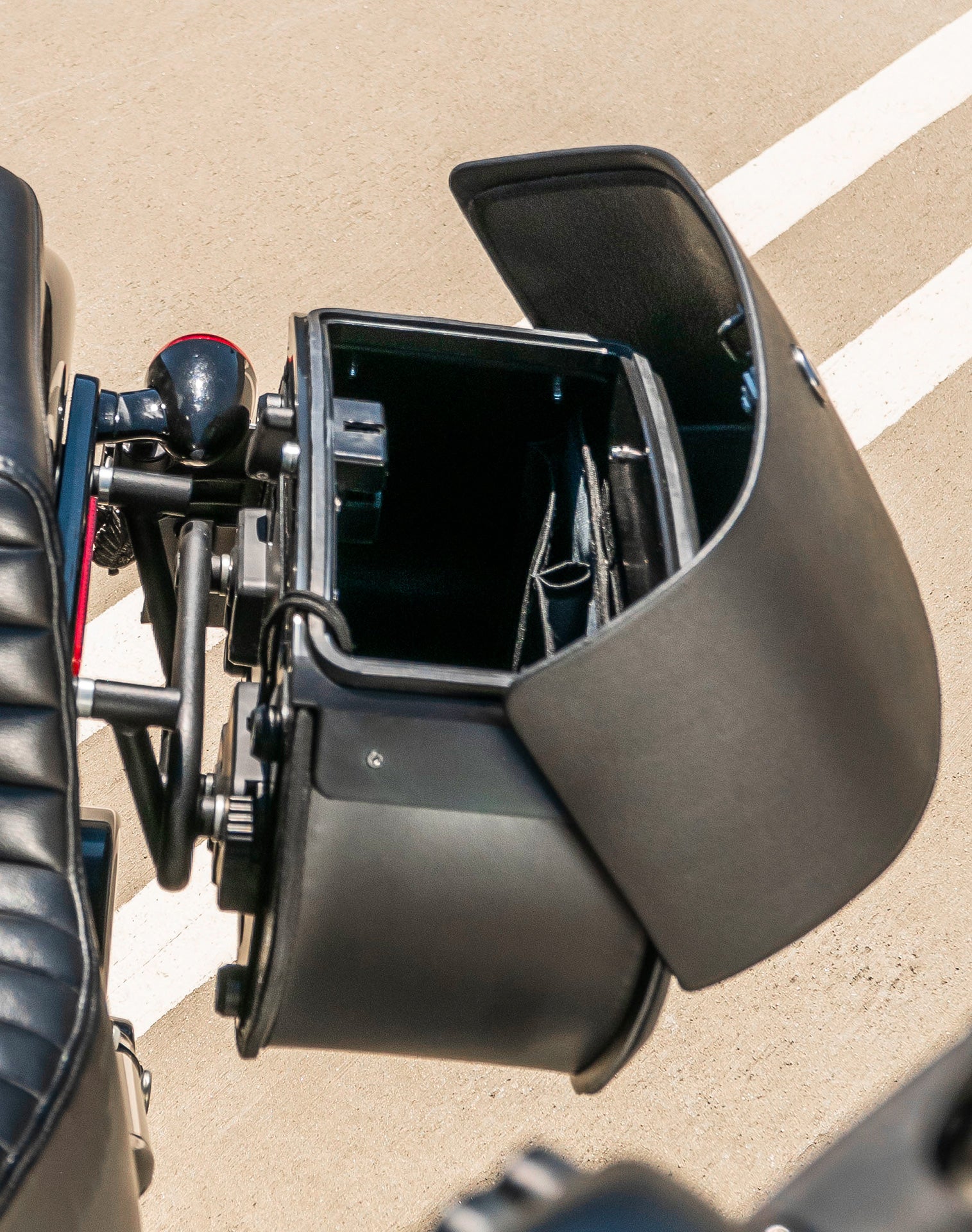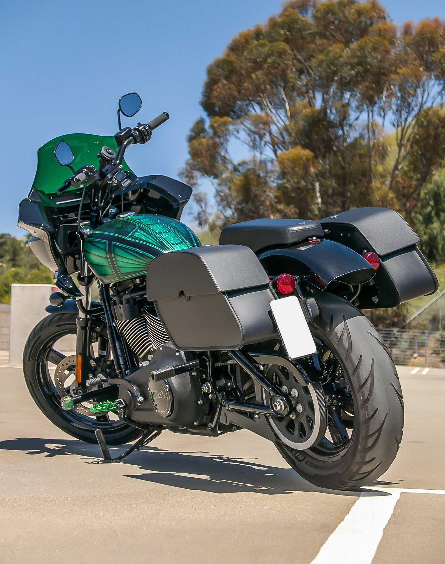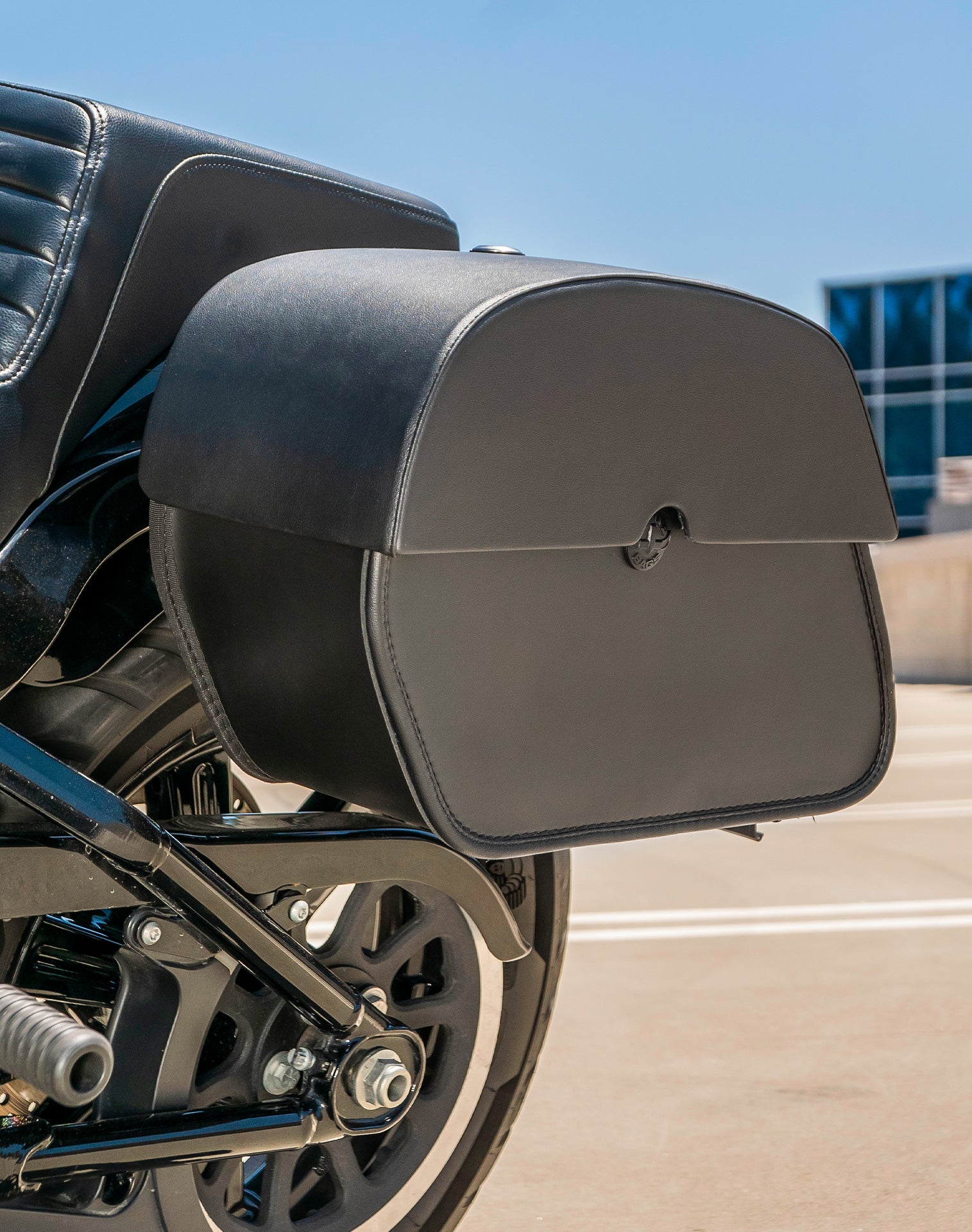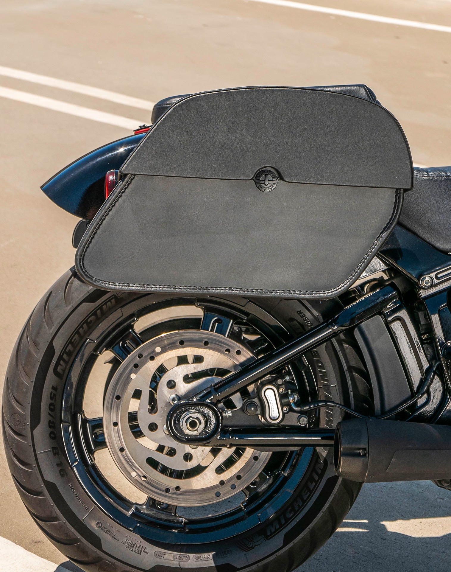 28L - Panzer Medium Quick Mount Leather Saddlebags For Harley Softail Street Bob FXBB