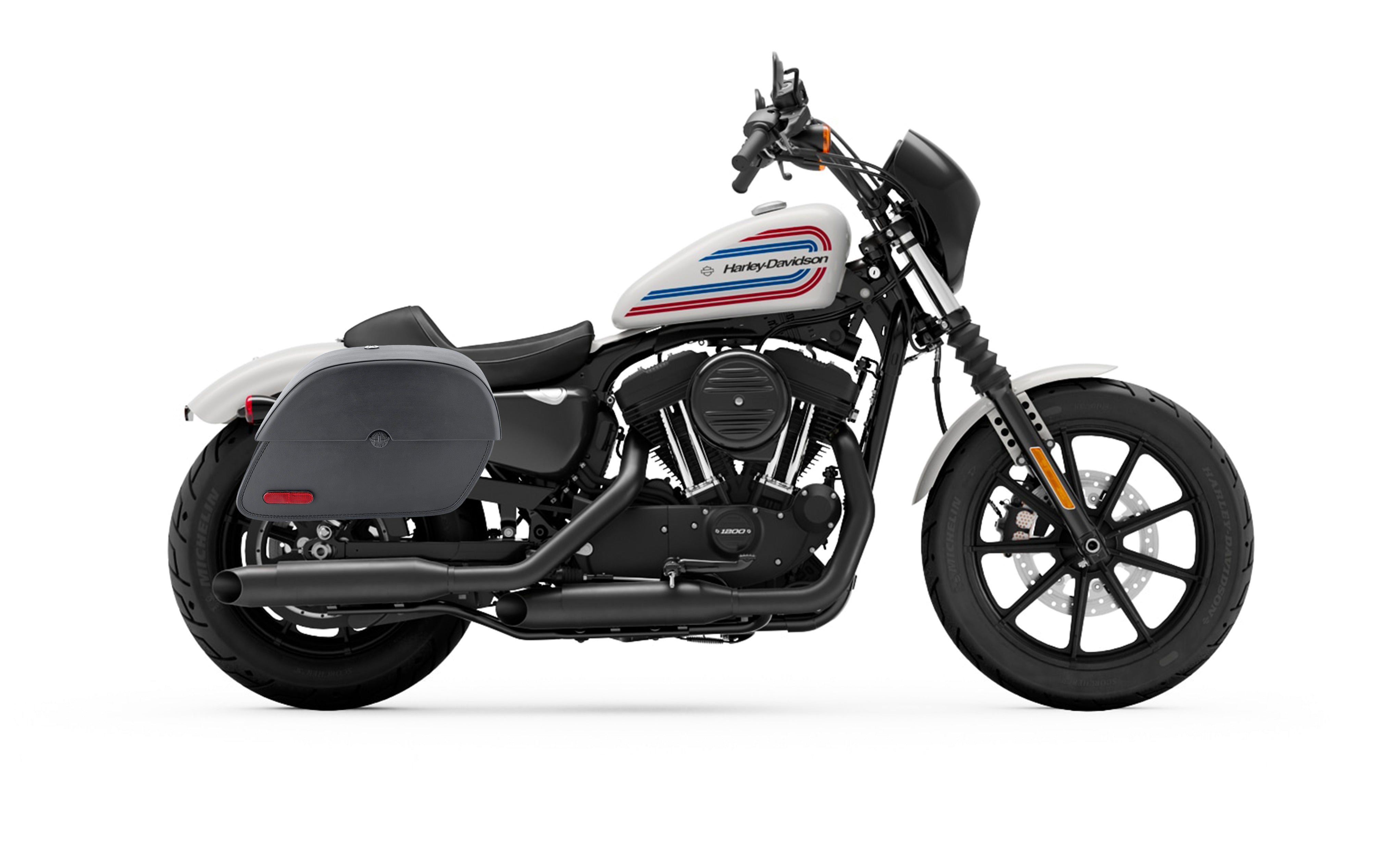 28L - Panzer Medium Quick Mount Leather Saddlebags For Harley Sportster 1200 Iron XL1200NS