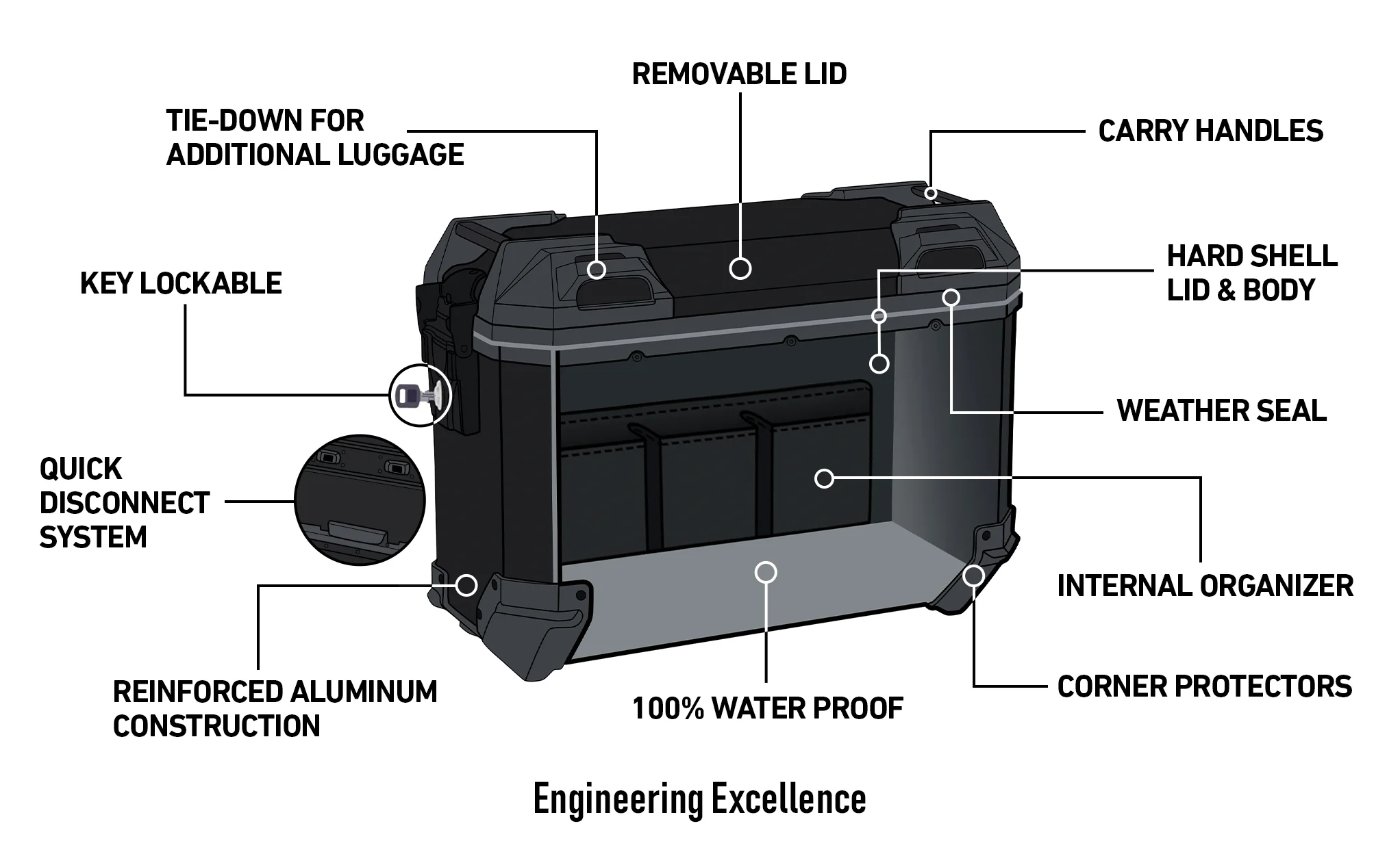 45L - Apex XL BMW F 850 GS Aluminum Side Cases Black